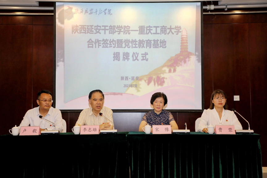 7月14日,学校党委书记李志雄专程到延安看望pp电子培训班学员,并出席pp电子与陕西延安干部学院合作签约暨党性教育基地揭牌仪式,学校党委副书记宋豫、陕西延安干部学院副院长卢毅、陕西延安干部学院梁家河分院副院长曹蓉共同出席。仪式由曹蓉主持,pp电子干部素质能力提升专题培训班全体学员参加了本次会议。