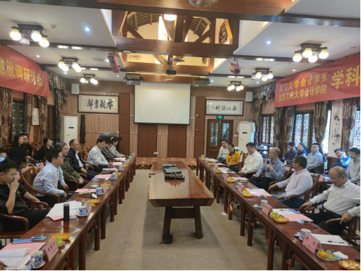 邓德敏致欢迎辞,他对厦大会计学系16位教师的到来表示热烈欢迎,同时感谢厦大一直以来在学科建设、科学研究、教师发展、人才输送等方面对会计学院的支持和帮助。