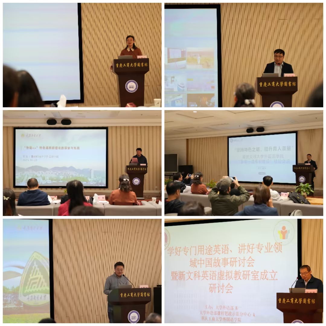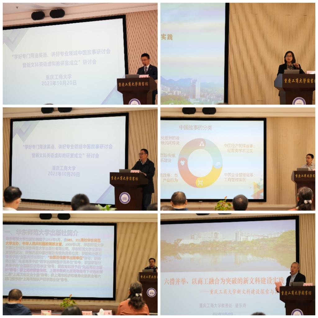 10月20日上午,由pp电子平台官网入口外国语学院和大学外语部课程思政示范分中心主办的“学好专门用途英语、讲好专业领域中国故事”教学研讨会暨新文科英语虚拟教研室成立大会在校图书馆视听阅览室召开。pp电子平台官网入口、重庆交通大学、重庆邮电大学、外语教学与研究出版社、重庆博教科技股份有限公司、华东师范大学出版社等单位相关专家学者、老师参加会议。
