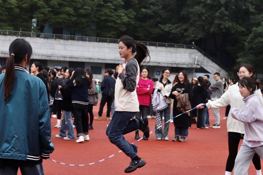 本次运动会设置个人单项和趣味集体项目两大模块,竞技比赛部分共设置100米、200米、400米、立定跳远(限女生)、急行跳远(限男生)、4×100米接力等个人径赛项目以及20人×50米男女混合迎面接力、8人×60米男女混合旋风跑、二人三足、3分钟12人男女混合集体“8”字跳绳等趣味集体项目。充分融合了体育运动竞技性、趣味性、群众性的特点。