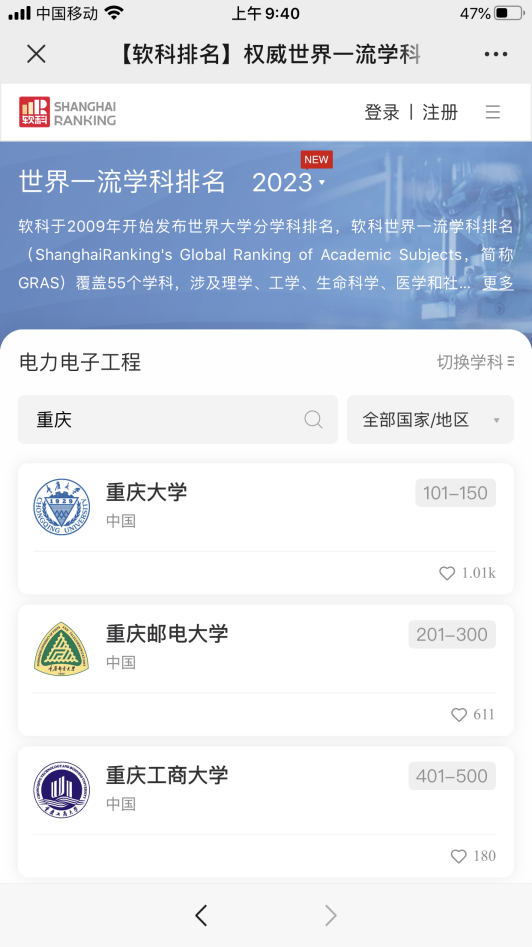 10月27日,高等教育评价专业机构软科正式发布2023“软科世界一流学科排名”。pp电子共有3个学科上榜。其中,化学工程学科进入世界一流学科排名前300,工商管理学学科进入世界一流学科排名前400,电子科学与技术学科进入世界一流学科排名前500。