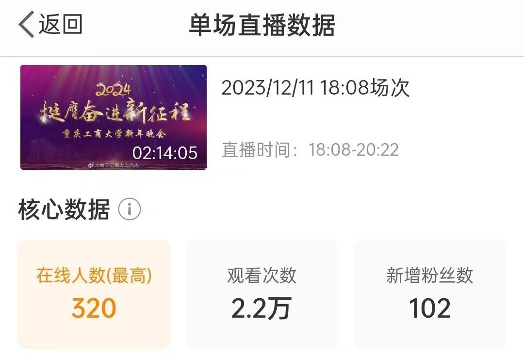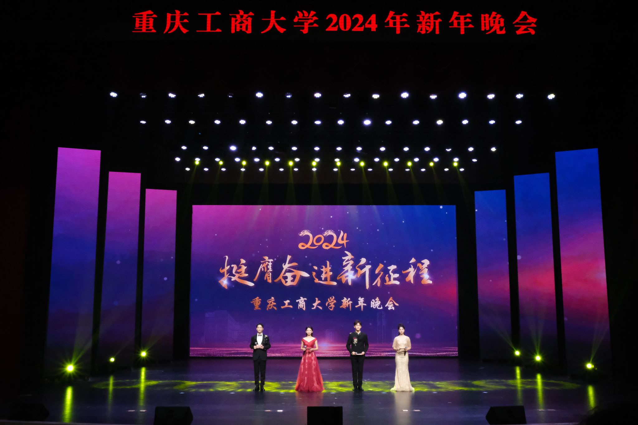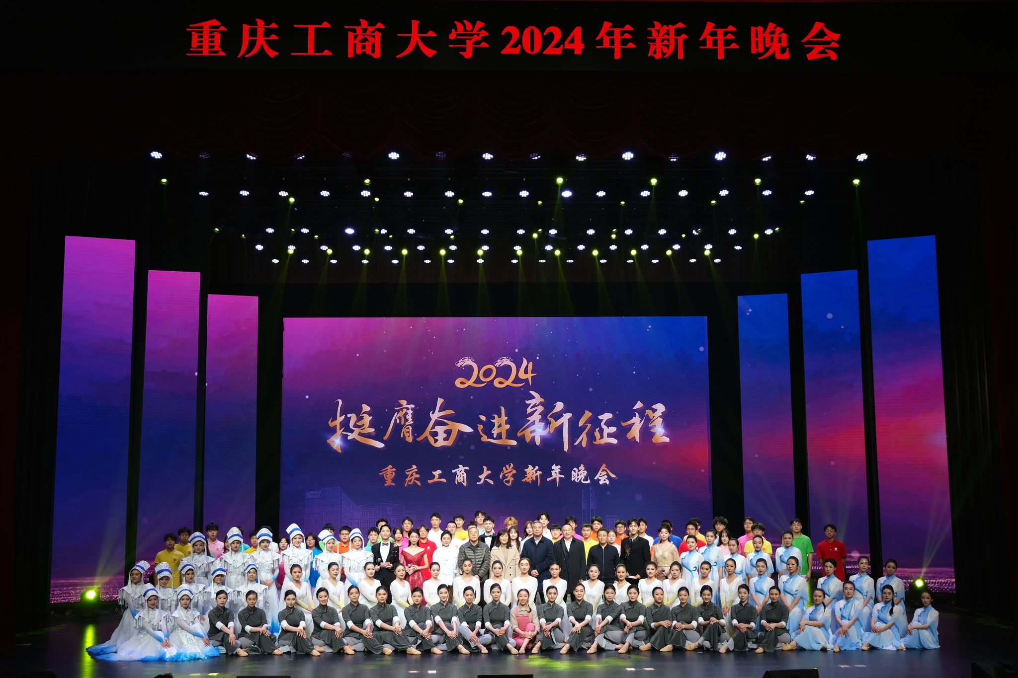 12月11日晚,“挺膺奋进新征程”pp电子平台官网入口2024年新年晚会在pp电子剧场隆重举行。校长温涛,党委常委、副校长李国军,党委常委、纪委书记、重庆市监委驻学校监察专员张海燕,党委常委、宣传部部长华杰,党委常委、统战部常务副部长陈松,教务处处长骆东奇,校团委书记吴佑波,校团委副书记胡婧婷,与全校近千名师生代表欢聚一堂,齐享视听盛宴。本次新年晚会汇聚歌曲、戏剧、舞蹈、朗诵等艺术形式,多个重庆市第七届大学生艺术展演活动一等奖节目登台演出,是pp电子美育教学成果的集中演示,美育育人成效显著。同时,校团委官方微博对晚会进行全程线上直播,师生、校友、学生家长在线观看人数达2.2万人,重工商大人线上线下欢聚一堂,共同启航新年。