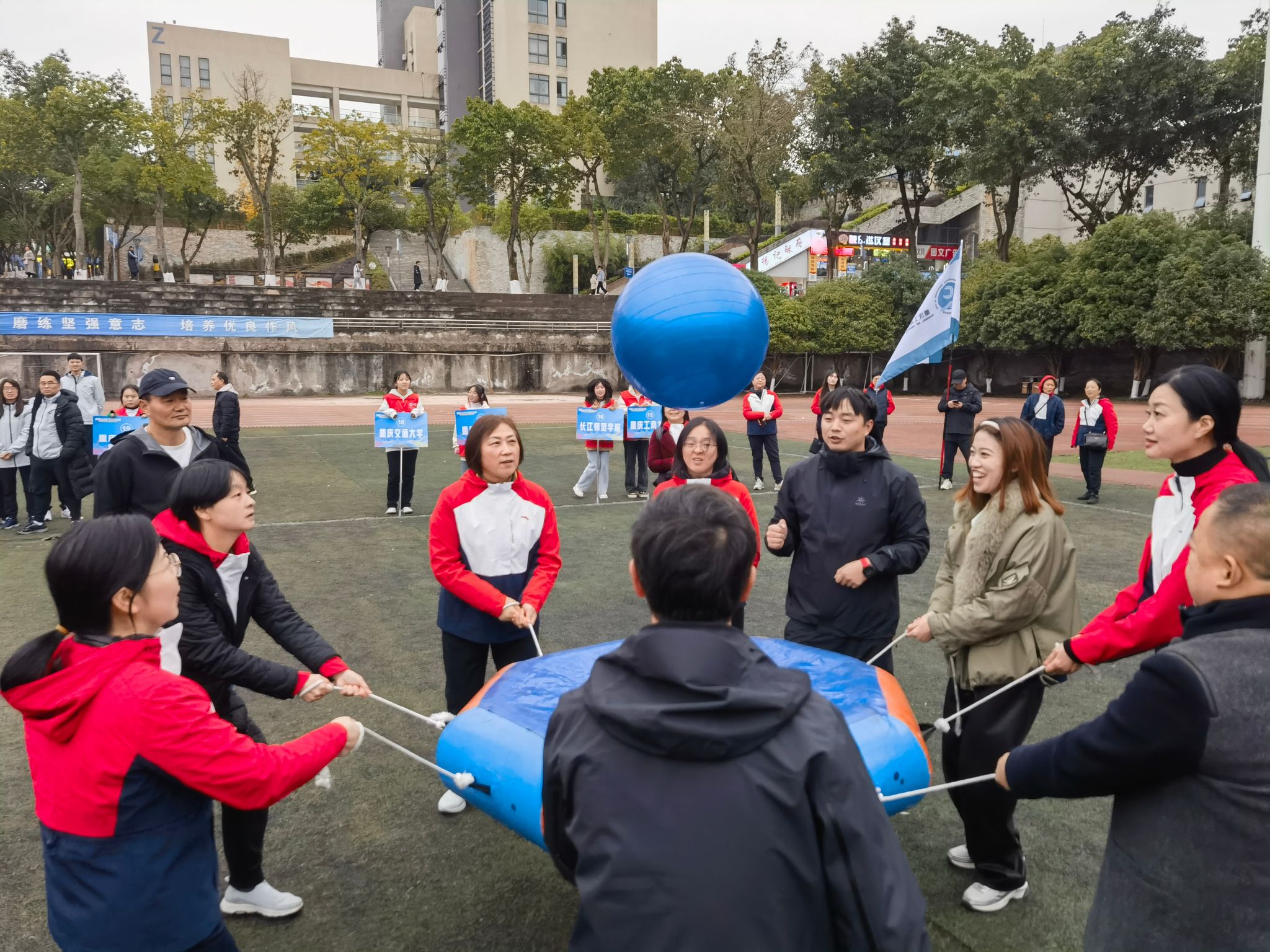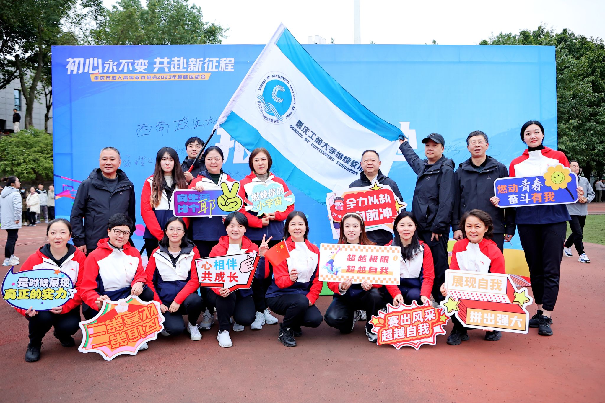 12月15日,由重庆市成人高等教育协会举办的主题为“初心永不变,共赴新征程”2023年趣味运动会在重庆工业职业技术学院举行,来自全市24所高校继续教育学院代表队参加了此次运动会,pp电子继续教育学院组织全体教职工参加了比赛。