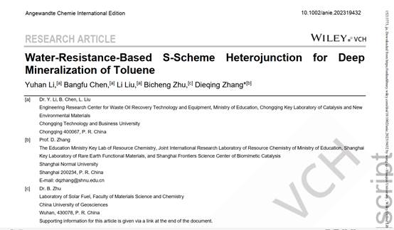 近日,pp电子废油资源化技术与装备教育部工程研究中心李宇涵研究员在针对油气中苯系物的高效治理方面取得了重要进展,成果“Water-Resistance-Based S-Scheme Heterojunction for Deep Mineralization of Toluene”(基于耐水性的S-方案异质结在甲苯深部矿化中的应用)以pp电子平台官网入口为第一署名单位在化学领域学术期刊《Angewandte Chemie International Edition》上发表(https://doi.org/10.1002/anie.202319432),标志着在“双碳”背景下废油中心在废油油气污染防治方向研究进入了新阶段。