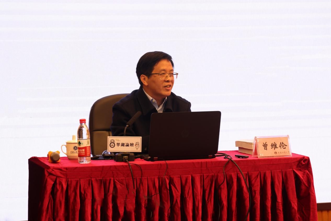 曾维伦围绕“《习近平著作选读》的编纂特点”“新时代伟大征程的生动记录”“开辟马克思主义中国化时代化新境界”三个方面,向与会师生系统全面地讲解。