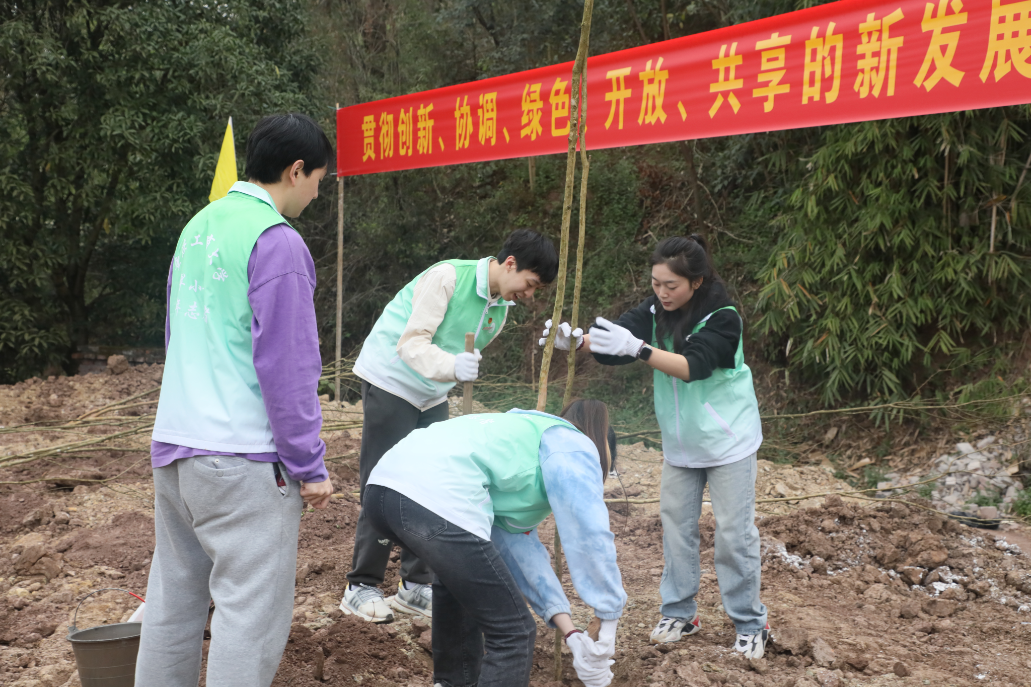 人勤春来早,植绿正当时。为深入贯彻落实习近平生态文明思想,牢固树立和践行绿水青山就是金山银山的理念,3月12日上午,pp电子在茶园新校区举办“‘植’此青绿,共创未来”师生校友义务植树活动。