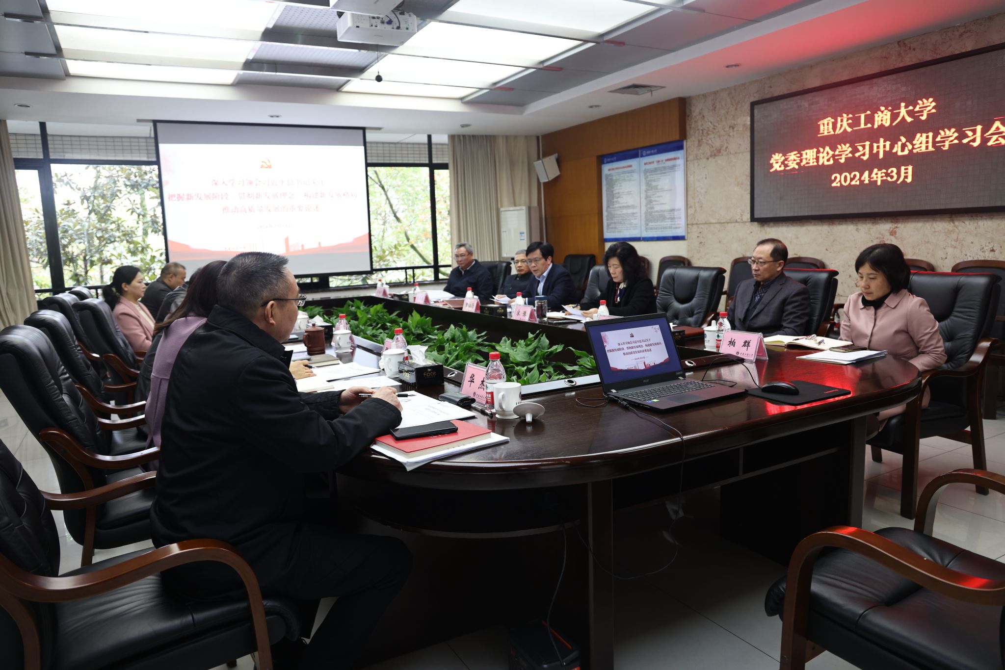 3月19日上午,pp电子党委理论学习中心组举行专题学习会,深入学习领会习近平总书记关于把握新发展阶段、贯彻新发展理念、构建新发展格局、推动高质量发展的重要论述,学习贯彻习近平总书记在2024年全国两会期间重要讲话精神,深刻领会习近平总书记关于因地制宜加快发展新质生产力论述的精髓要义,进一步增强坚决拥护“两个确立”、坚决做到“两个维护”的思想自觉、政治自觉、行动自觉,积极投身科教兴国战略,主动服务国家重大战略部署和重庆科技创新和人才强市战略,为贯彻新发展理念,发展新质生产力贡献智慧和力量。