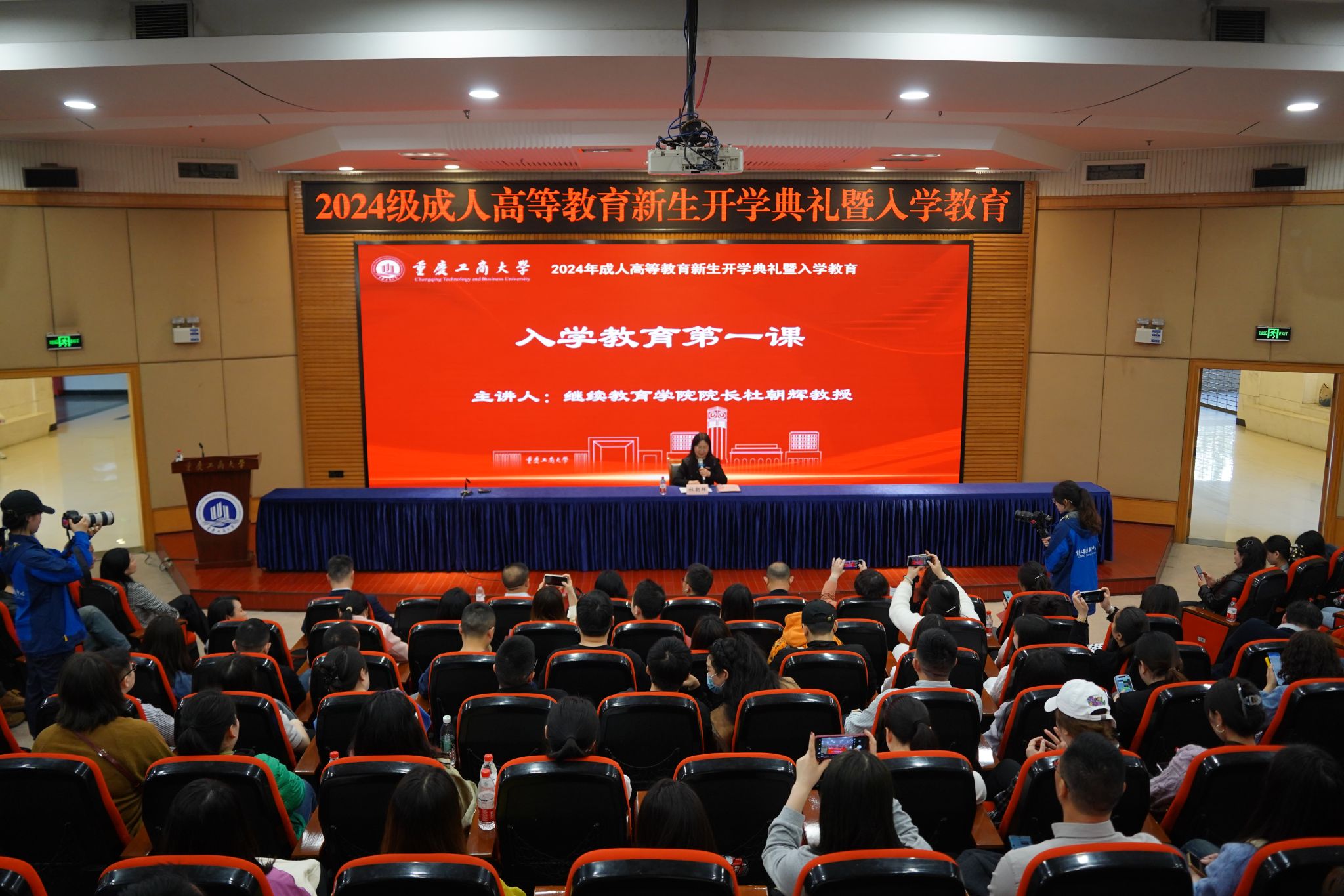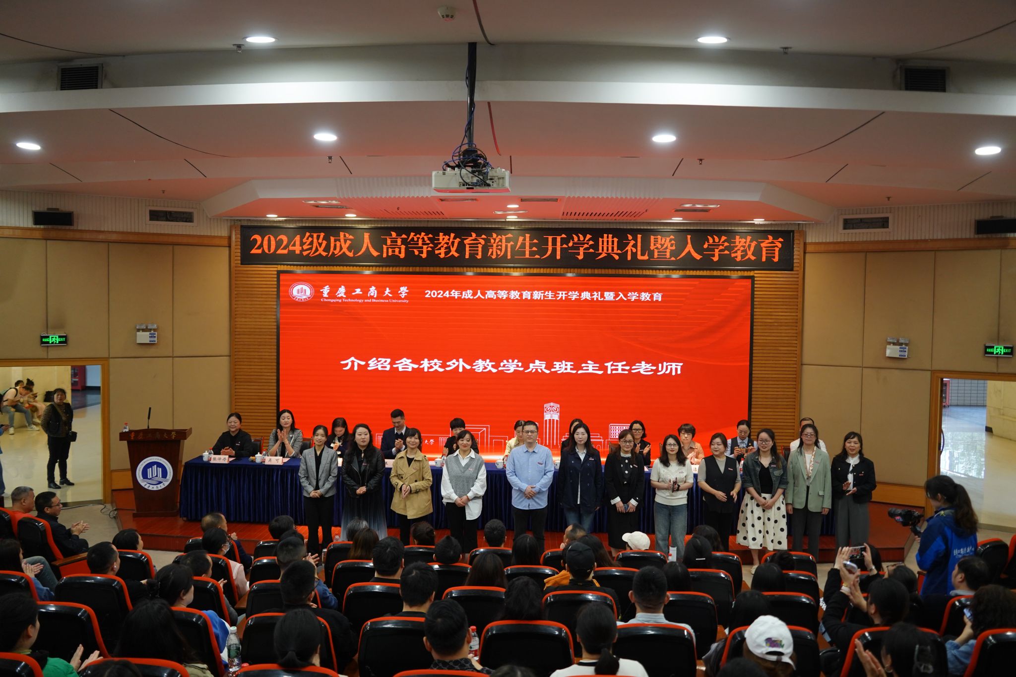 开学典礼在雄壮的国歌声中拉开序幕。2024级成教班主任代表首先与新生见面。