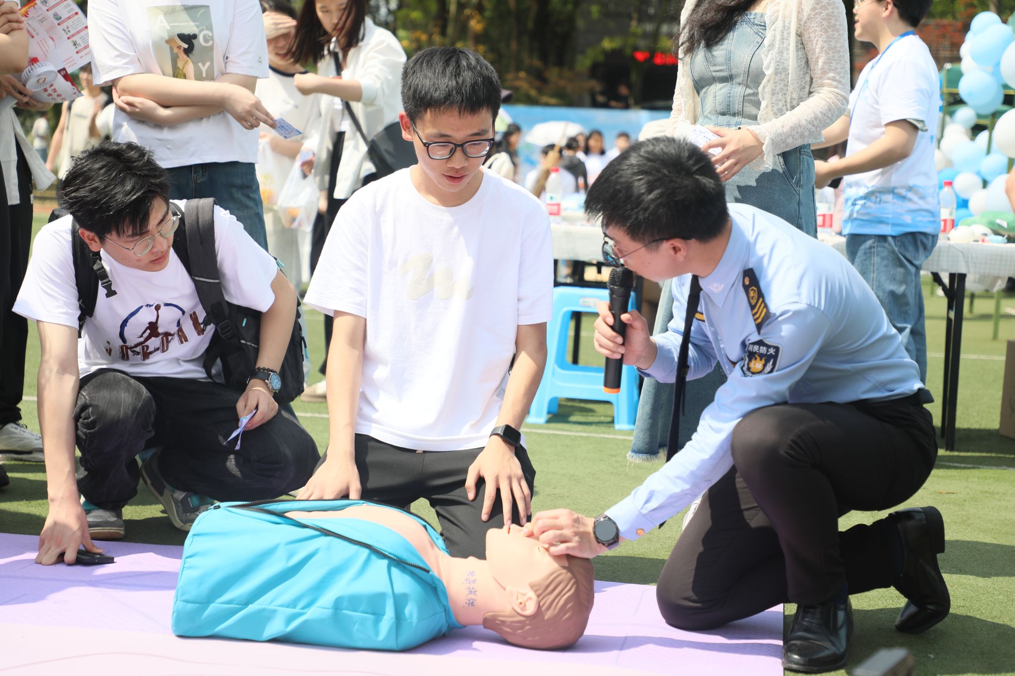 本次游园会以“宣传安全知识、法律知识”为核心主题,精心设计了“心理研学社、公寓安全圈、反诈加油站、反霸防欺墙、消防体验厅、急救技能屋、平安邮局”等七个互动版块。通过游戏与互动体验的方式,师生们在轻松愉快的氛围中增强法治意识,筑牢安全防线。