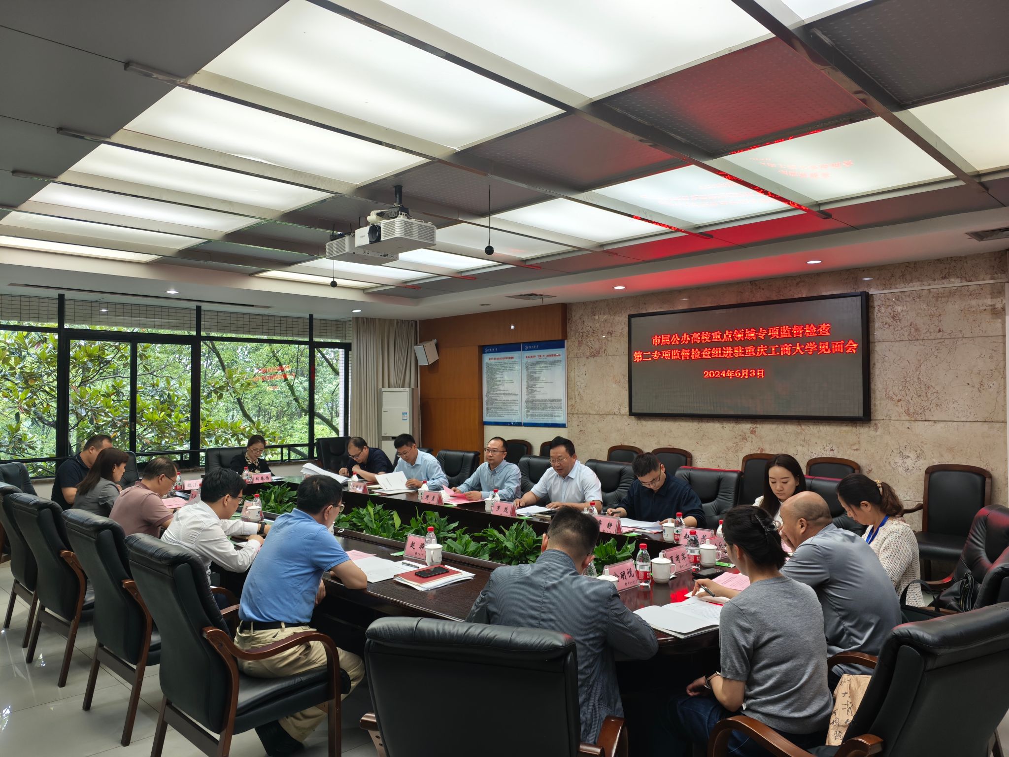 按照市纪委监委统一安排,2024年6月3日,重庆市属高校重点领域专项监督检查组第二组对pp电子基建后勤校办企业领域开展专项检查并召开进驻见面会,相关校领导及部门负责人参加会议。会议由监督检查组副组长、重庆文理学院纪委书记、监察专员罗茂主持。