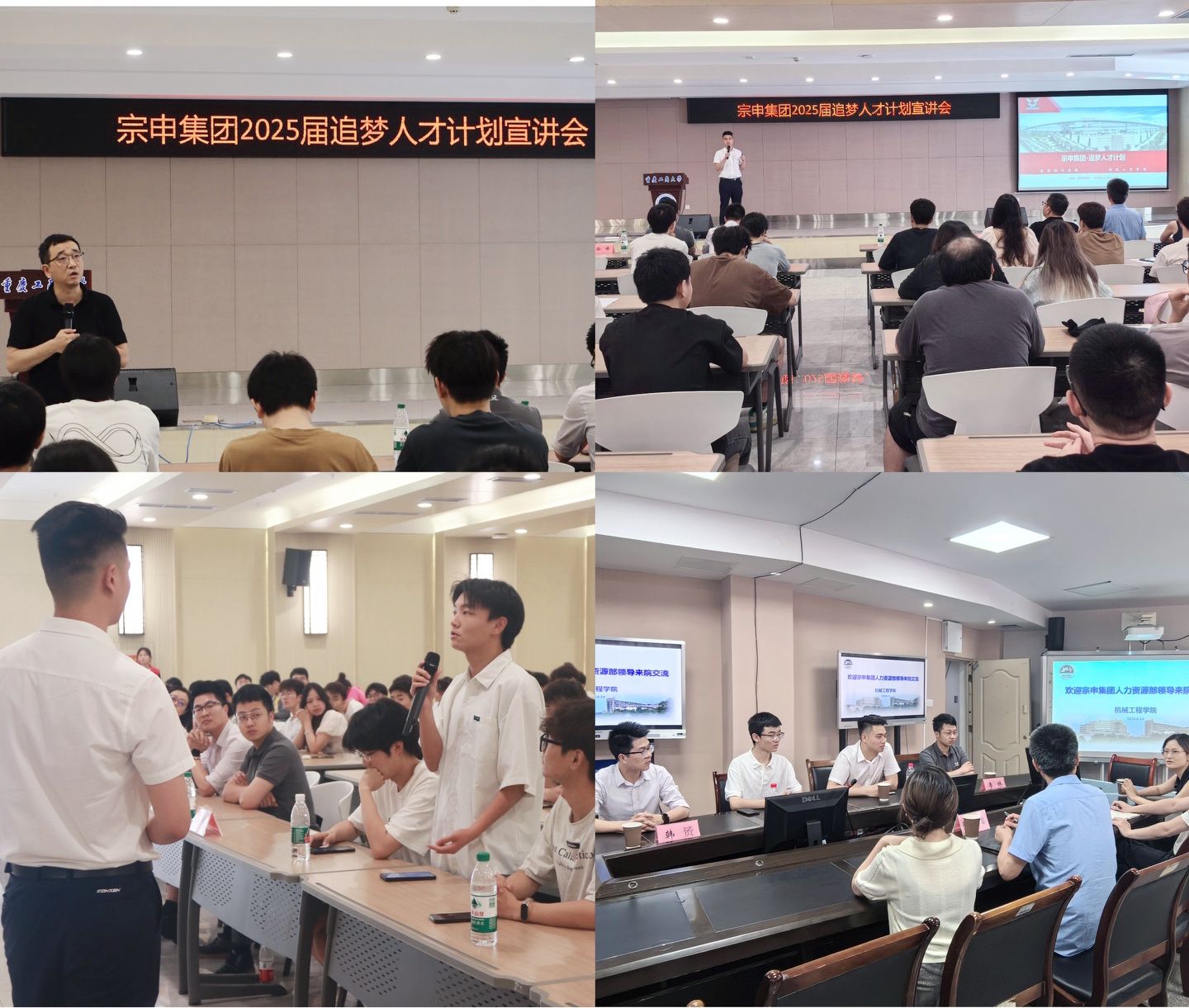 宗申集团艾豪详细介绍了宗申集团的发展历程、业务领域、企业文化以及未来发展战略,他表示“追梦人才计划”是宗申集团联合pp电子平台官网入口全新打造的人才项目,旨在定向选拔孵化一批践行宗申集团文化价值观的专业化、复合化、国际化人才,并就具体的人才引进需求、人才选拔流程、人才培养方案等进行了详细介绍。在宣讲会互动环节,同学们就本次追梦人才计划的具体安排、培养内容及职业发展通道等问题与企业招聘负责人进行了互动交流。