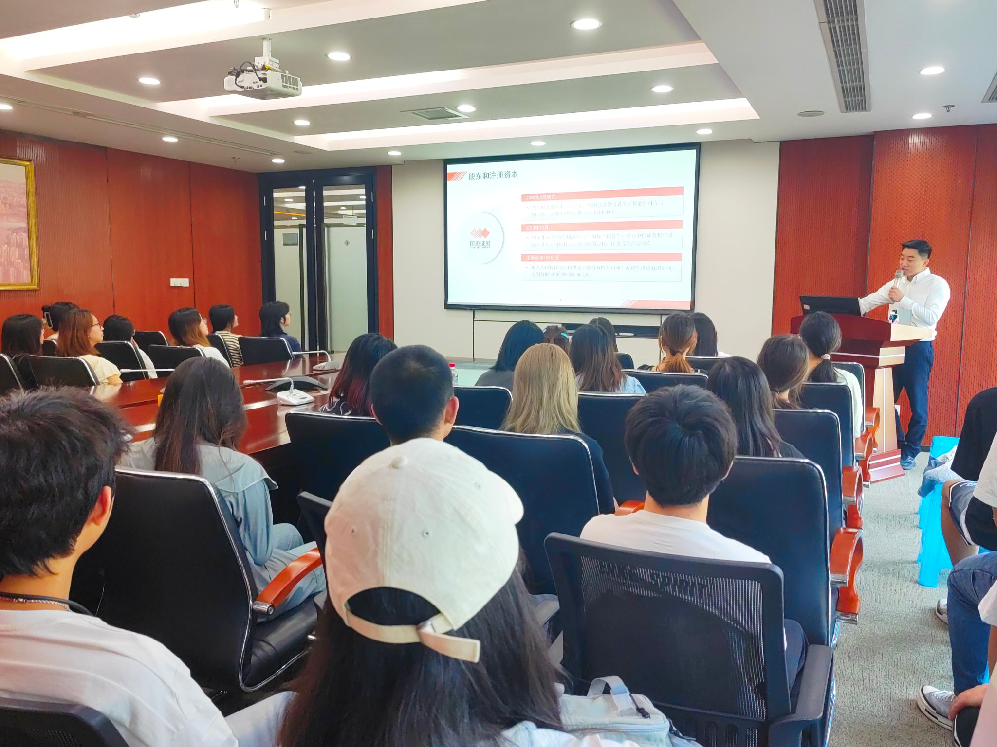 会上,双方签订了《pp电子平台官网入口金融学院与国投证券有限公司重庆分公司战略合作协议》,并为实习就业、产教融合实训基地授牌。当天,金融学院组织近40名金融学专业学生参加了实习实训活动。国投证券辅导老师从公司的基本情况、部门对人才的需要特征、面试需要具备的资质和技能、金融科技与传统金融学的用人需求比较、中国现阶段证券行业行情分析等内容进行了详细的讲解,受到学生欢迎和好评。