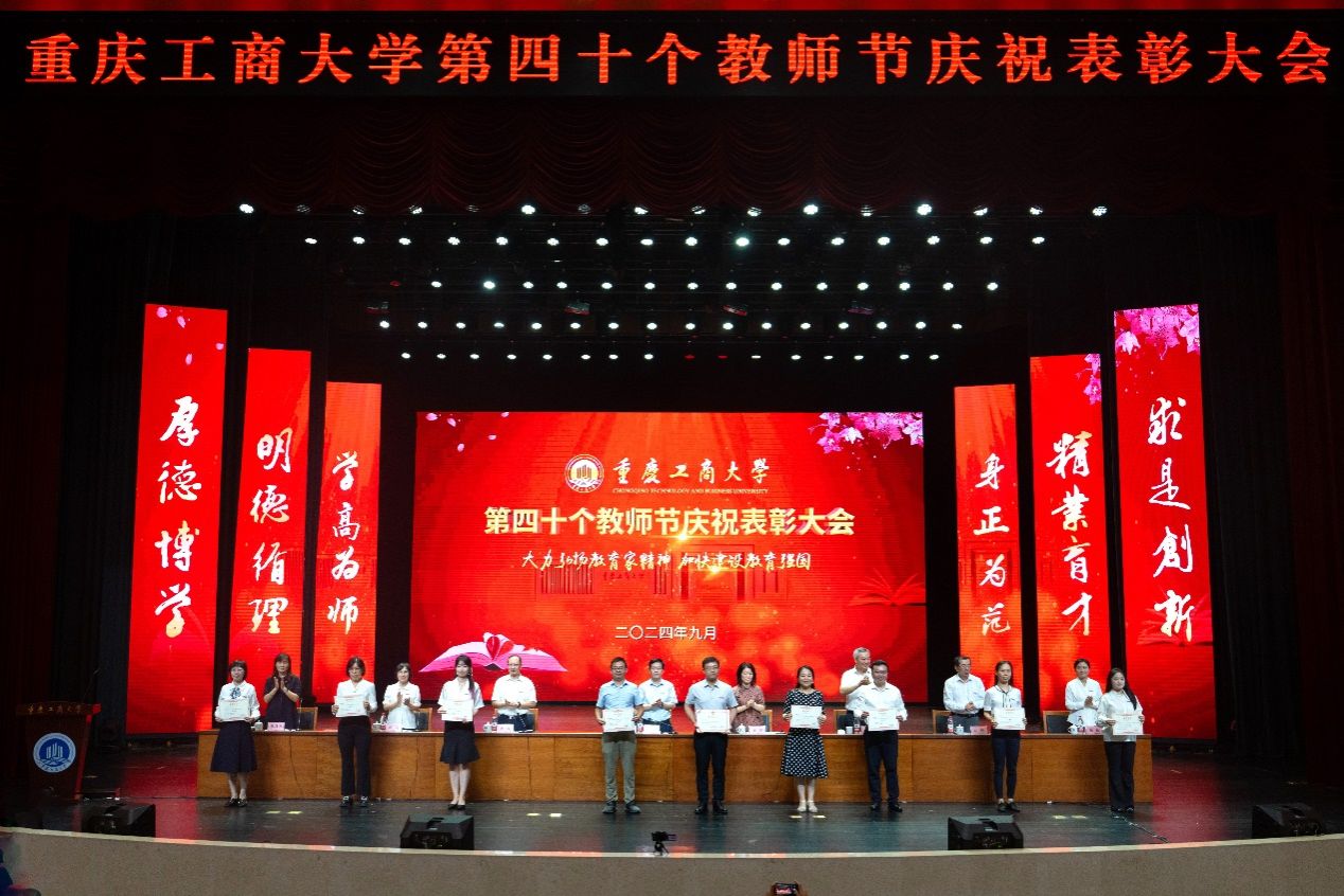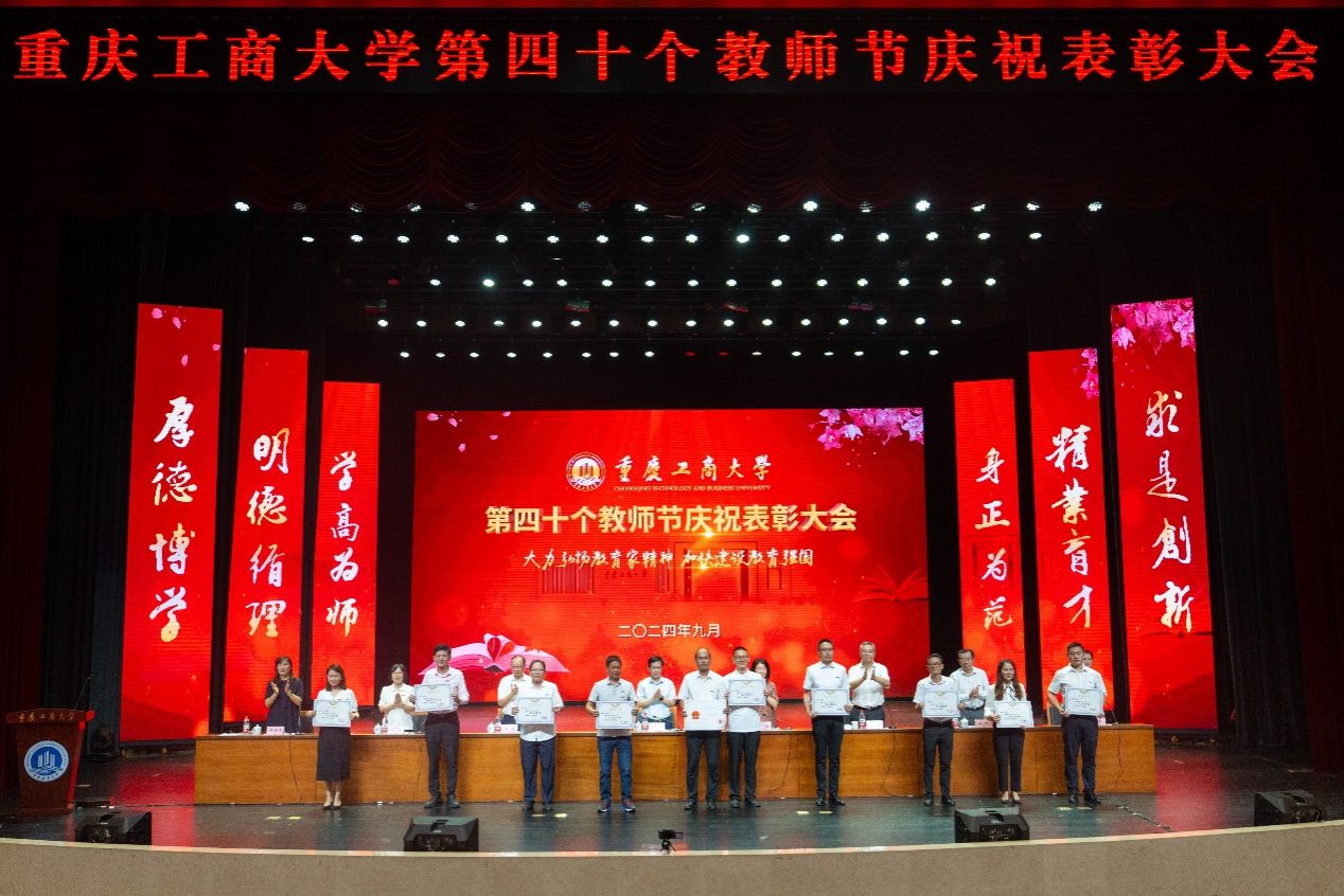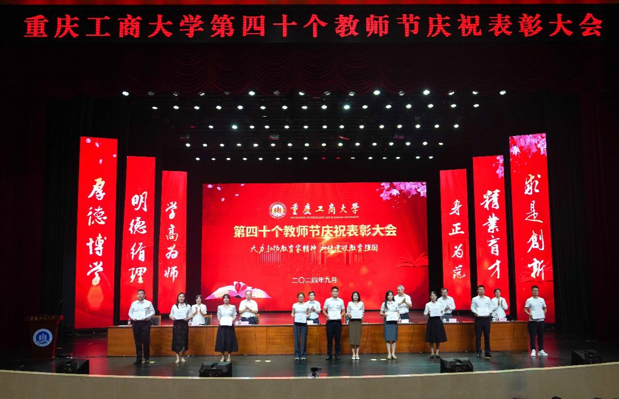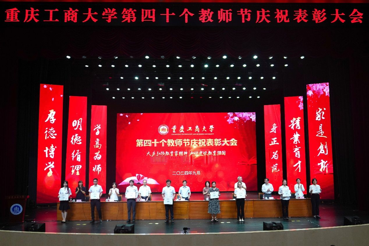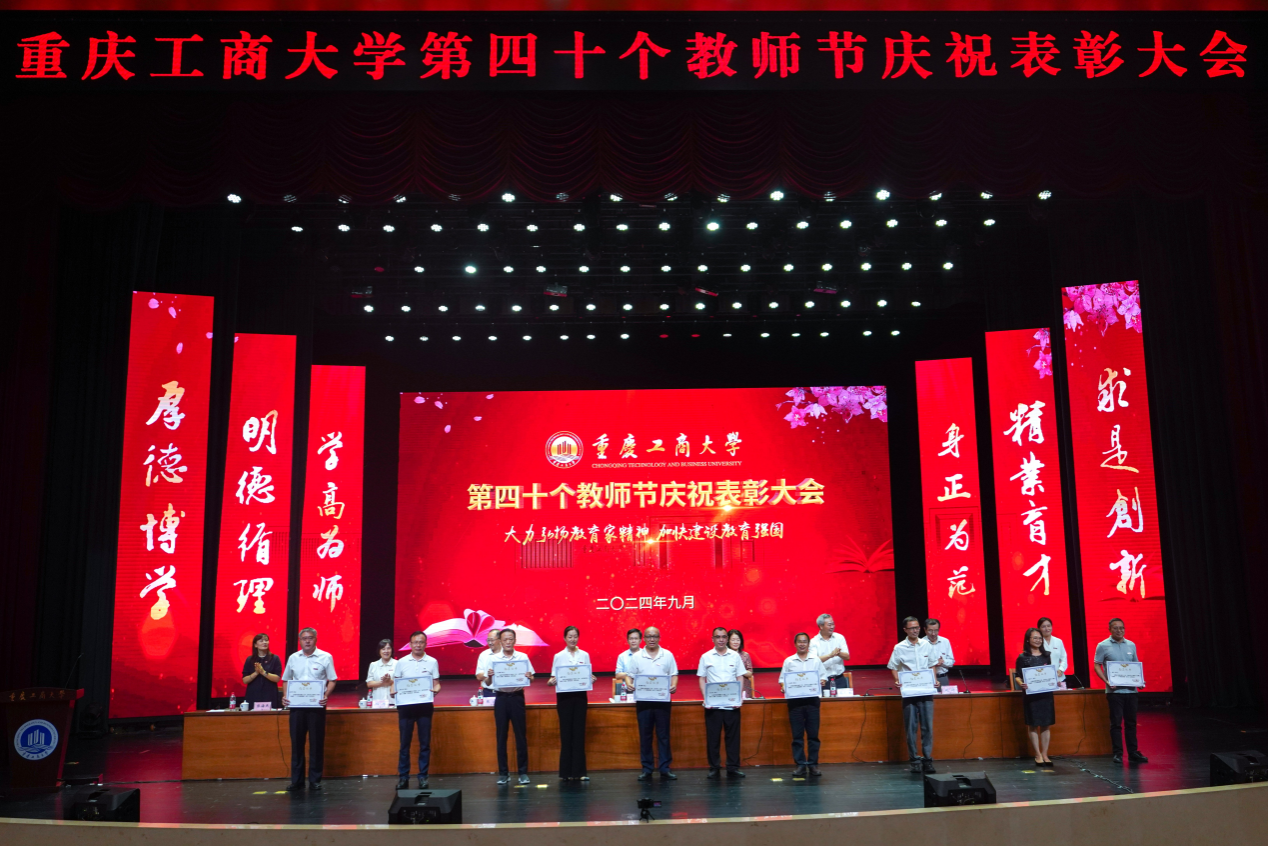 大会表彰了2024年全国优秀教师,第七届全国高校青年教师教学竞赛思想政治课专项组二等奖、市赛特等奖获得者,2023年重庆市教学创新大赛获奖教师,第五届“教师教学奖”获奖教师,2024年萧丽玉教育发展基金优秀教师,2023-2024学年优秀教师、优秀教育工作者,2023-2024学年优秀辅导员,并为满30年教龄的教师和从事学校工作满30年的教职工代表颁发纪念证书。