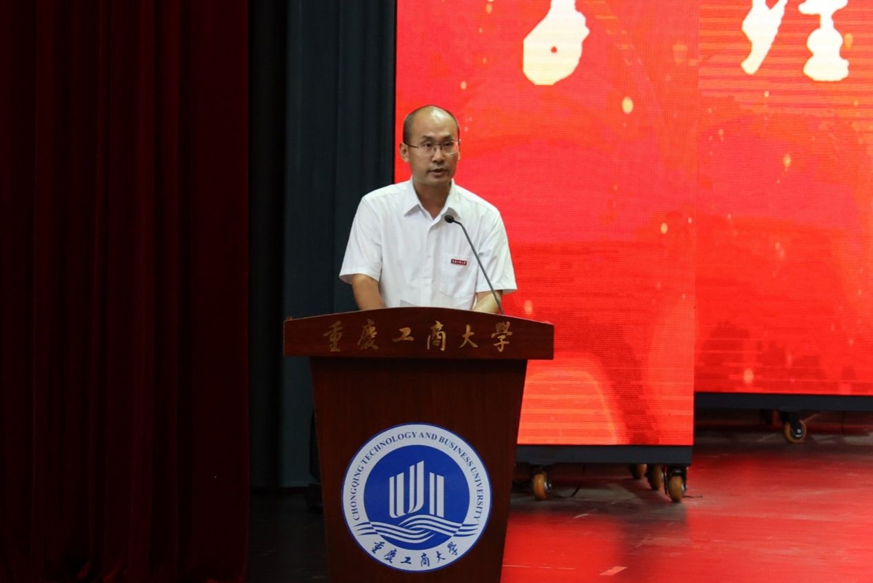 工商管理学院2022级王紫妍同学作为学生代表发言。她向全体老师致以节日祝福。她表示,将在老师的关心和引领下,仰望星空,脚踏实地,勤学善思,求真笃行,努力到祖国需要的地方去建功立业。