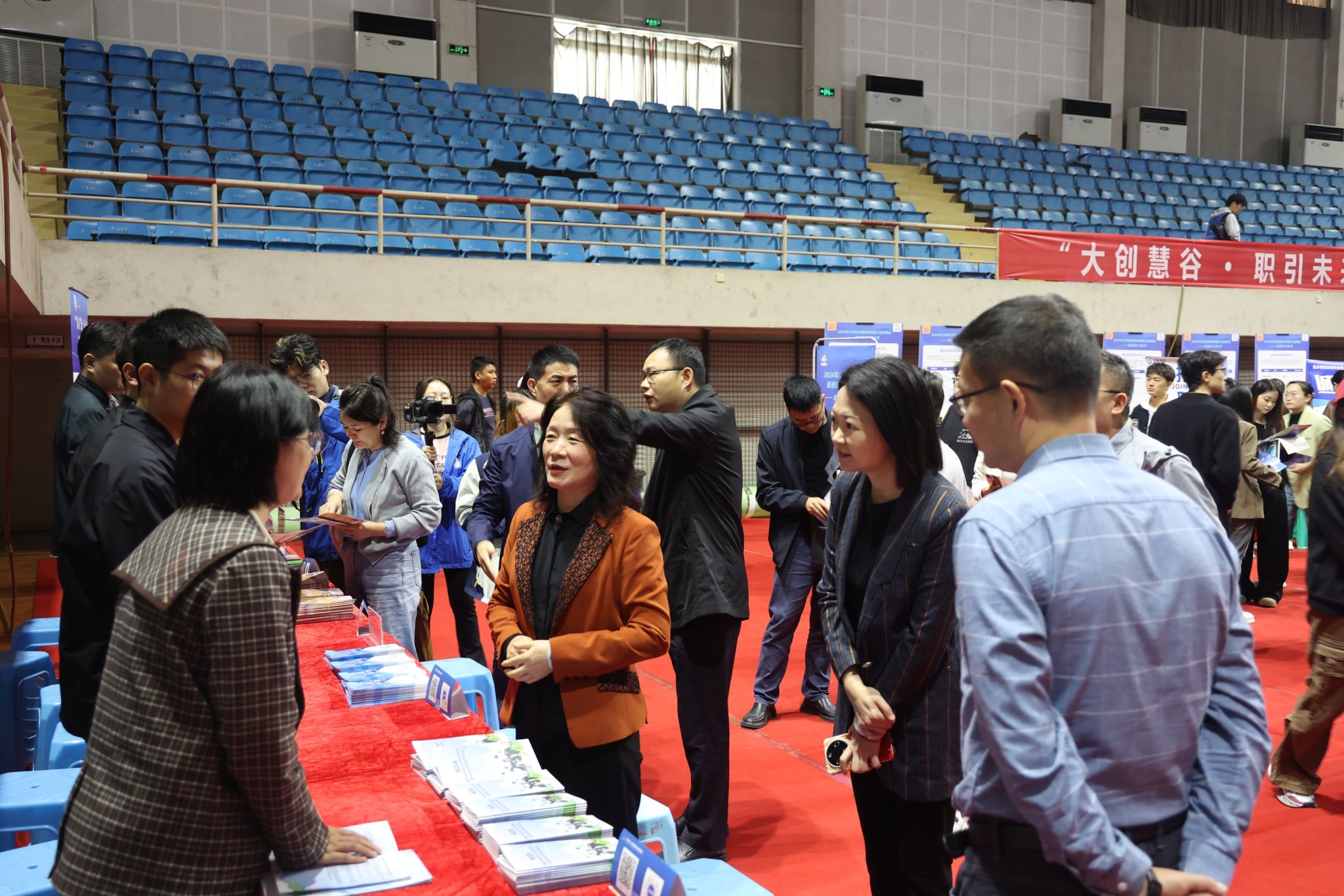 10月22日,“2024年公共就业服务进校园大型招聘会——走进pp电子平台官网入口”活动在pp电子体艺馆顺利举办。学校党委副书记宋豫,市人社局二级巡视员、市就业服务管理局党委书记、局长唐天元,市教委二级巡视员卢明伦,市人才交流服务中心副主任陈峰,南岸区就业和人才中心主任邹富丞等领导到现场指导。