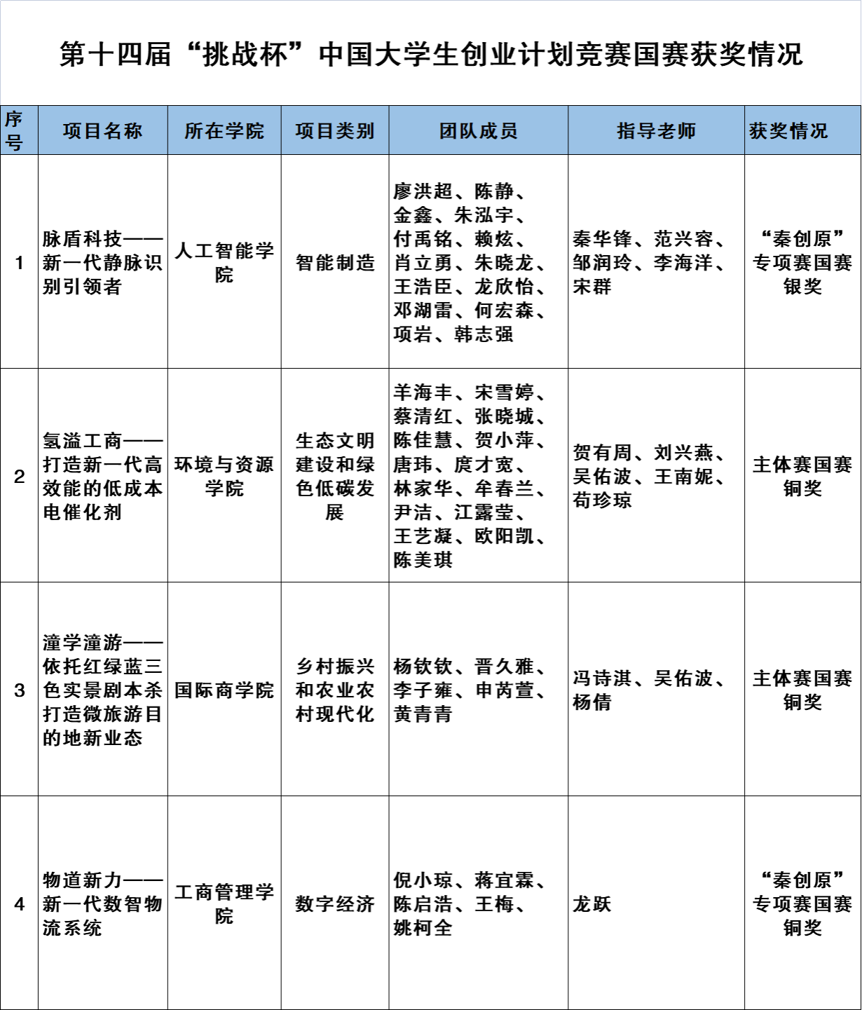 10月29日-11月2日,由共青团中央、教育部、人力资源社会保障部、中国科协、全国学联、陕西省人民政府联合主办,由西安交通大学、共青团陕西省委承办的第十四届“挑战杯”中国大学生创业计划竞赛在西安交通大学(兴庆校区)举行。经过层层角逐,pp电子参赛项目获国赛银奖1项、铜奖3项。人工智能学院项目《脉盾科技-新一代静脉识别引领者》获“秦创原”创新挑战专项赛国赛银奖,环境与资源学院项目《氢溢工商一打造新一代高效能的低成本电催化剂》、国际商学院项目《潼学潼游—依托红绿蓝三色实景剧本杀打造微旅游目的地新业态》获主体赛国赛铜奖,工商管理学院项目《物道新力——新一代数智物流系统》获“秦创原”创新挑战专项赛国赛铜奖。