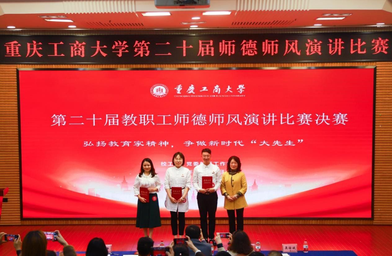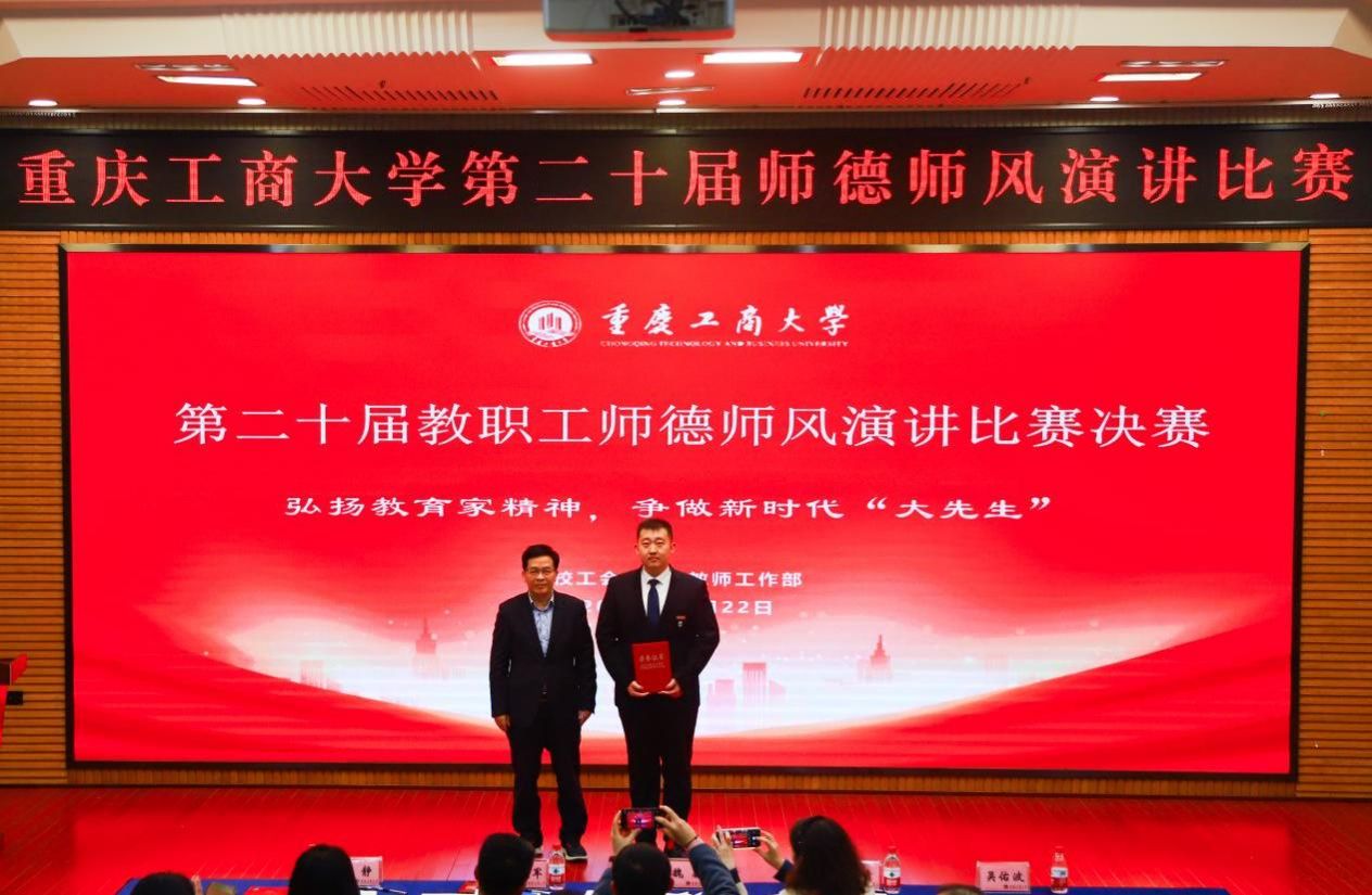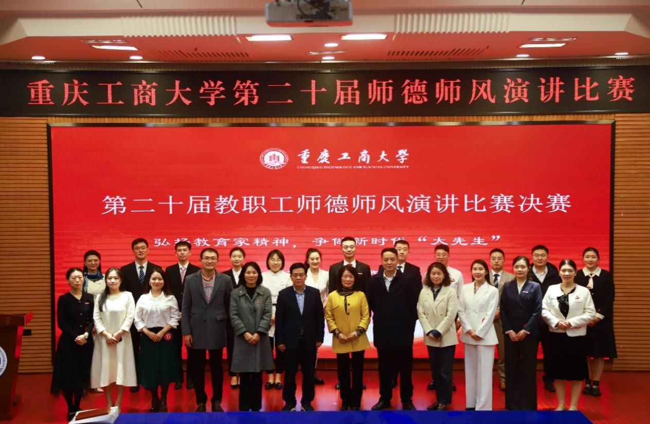 11月22日下午,由校工会、党委教师工作部联合举办的“立足新时代·当好主人翁·建功工商大”第二十届教职工师德师风演讲比赛决赛在博智楼7200学术报告厅举行。学校党委书记曾维伦,党委副书记、工会主席宋豫,党委常委、副校长张波、李国军,各学院党委/党总支书记、各部门工会主席以及教职工代表等观看了决赛。决赛邀请了重庆第二师范学院文学与传媒学院副教授魏巍,pp电子机关党委书记、组织部副部长杨倩,党委教师工作部部长、人事处处长林文军,工会常务副主席王静,团委书记吴佑波担任评委。