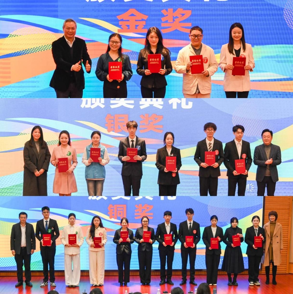 经过激烈角逐,在成长赛道中,工商管理学院田中娅同学、易超同学获金奖,人工智能学院银强同学、机械工程学院陈文运同学、会计学院高心怡同学获银奖,国际商学院张怡雯同学、工商管理学院黄祥艳同学、文学与新闻学院赖星羽同学、环境与资源学院贺小萍同学、国际商学院晋久雅同学获铜奖。在本科就业赛道中,来自人工智能学院张钰卜同学获金奖,外国语学院司强同学、管理科学与工程学院刘涛同学获银奖,工商管理学院蒙芳瑶同学、机械工程学院姚振豪同学、公共管理学院周琪同学获铜奖。在研究生就业赛道中,外国语学院邓霞同学获金奖,文学与新闻学院陈沄玥同学获银奖,文学与新闻学院徐婷婷同学、金融学院胡贵三同学获铜奖。同时,本次大赛设置了“天降Offer”环节,现场20名参赛选手共收到76份企业现场发放的Offer。