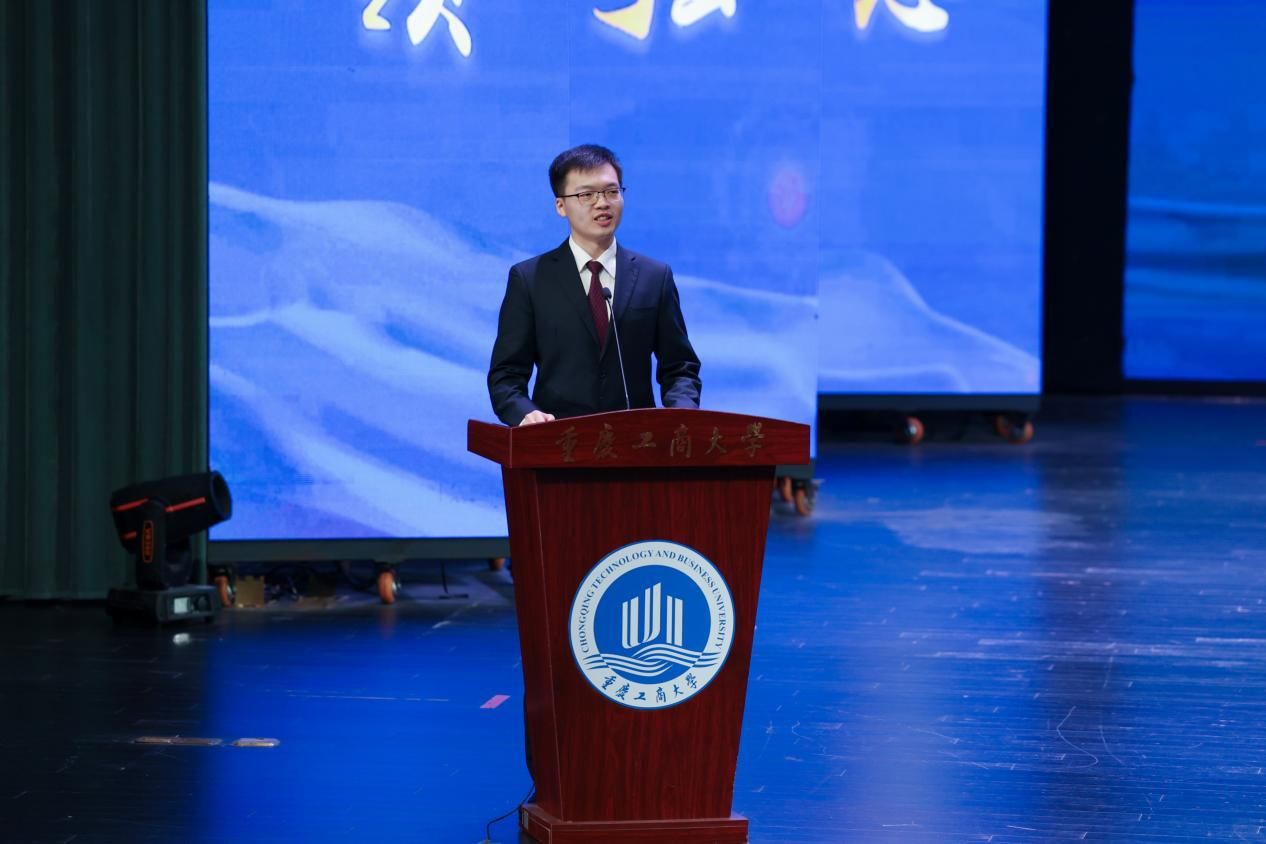 “让我们高唱青春赞歌,追逐梦想,奔向远方。”学生代表昂首挺胸,齐声朗诵《新时代、新青年》,展现出新时代重工商大学生“直挂云帆济沧海”的豪迈壮志,为实现中华民族伟大复兴的中国梦不断汇聚新的力量。