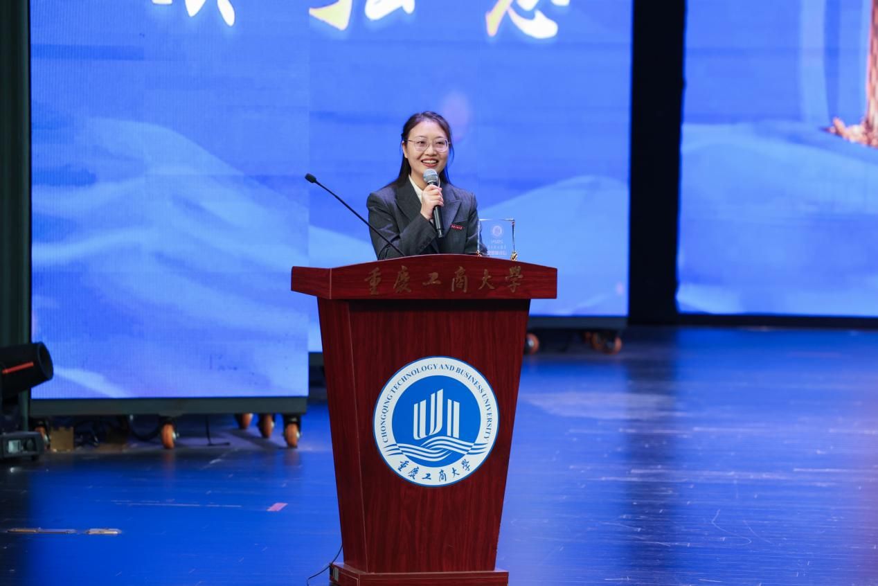 获奖学生代表章勤分享了在学校的成长与收获,向辛勤培养他的母校、领导和老师致以最衷心的感谢和最崇高的敬意。她表示,“未来之路依然任重而道远”,身为学生要继续常怀感恩之心,在“含弘自强,经邦济民”的重工商大精神指引下,带着老师们的殷切期望,不忘初心,砥砺前行,肩负时代的责任,承载国家和社会发展的希望,继续探索人工智能领域的科学奥秘,为国家智能科技发展尽绵薄之力。