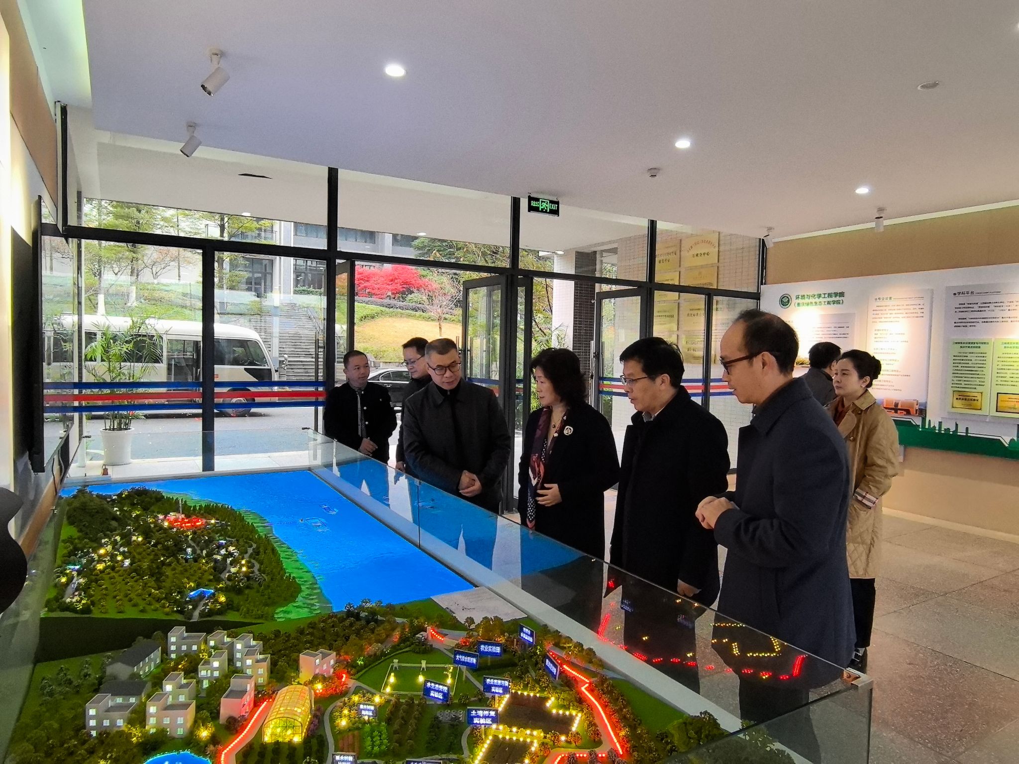 会前,曾维伦一行实地参观考察了重庆三峡学院的校园环境、艺术人才培养成果、产教融合环境治理实验室以及校园安全防控系统。