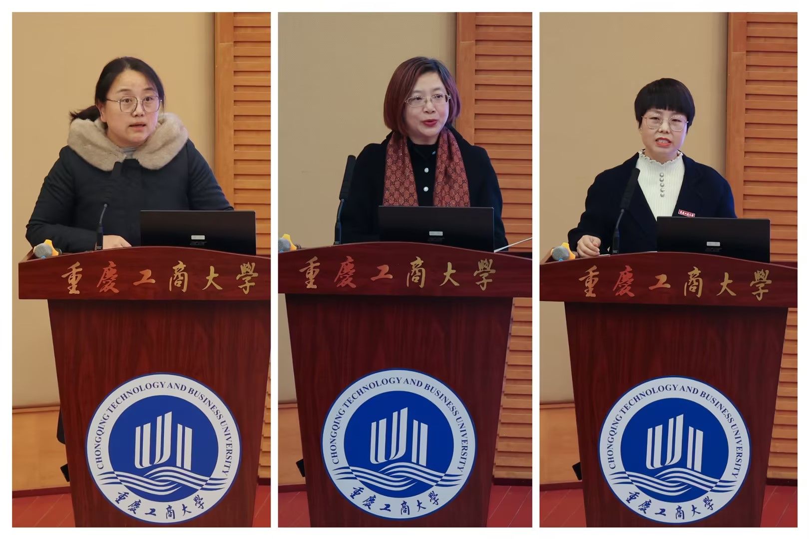 交流环节,2024届本科毕业生就业工作“先进集体”代表工商管理学院党委书记陈亚惠,“优秀个人”代表会计学院杜迎新老师、艺术学院毕业班辅导员宋宝莲老师分别进行了交流发言。