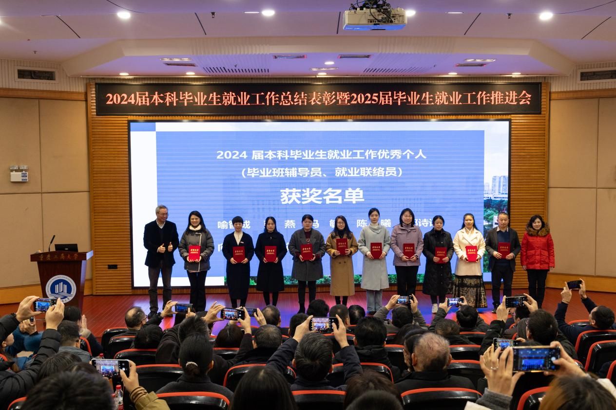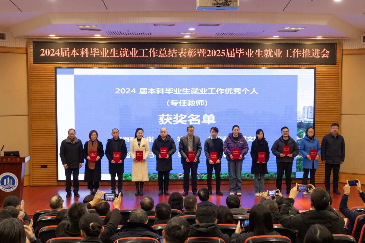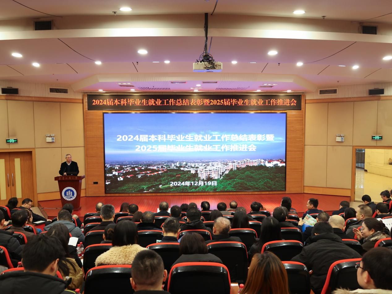 12月19日上午,学校在博智楼7200报告厅召开2024届本科毕业生就业工作总结表彰暨2025届毕业生就业工作推进会。学校党委书记曾维伦,党委副书记宋豫,党委常委、副校长张波、李国军、柏群,党委常委、纪委书记、监察专员张海燕,党委常委、副校长杨柏出席会议,各单位主要负责人,各学院书记、院长、副书记、分管教学副院长、就业联络员、2024届和2025届毕业班辅导员、2024届本科毕业生就业工作优秀个人参加会议。会议由李国军主持。