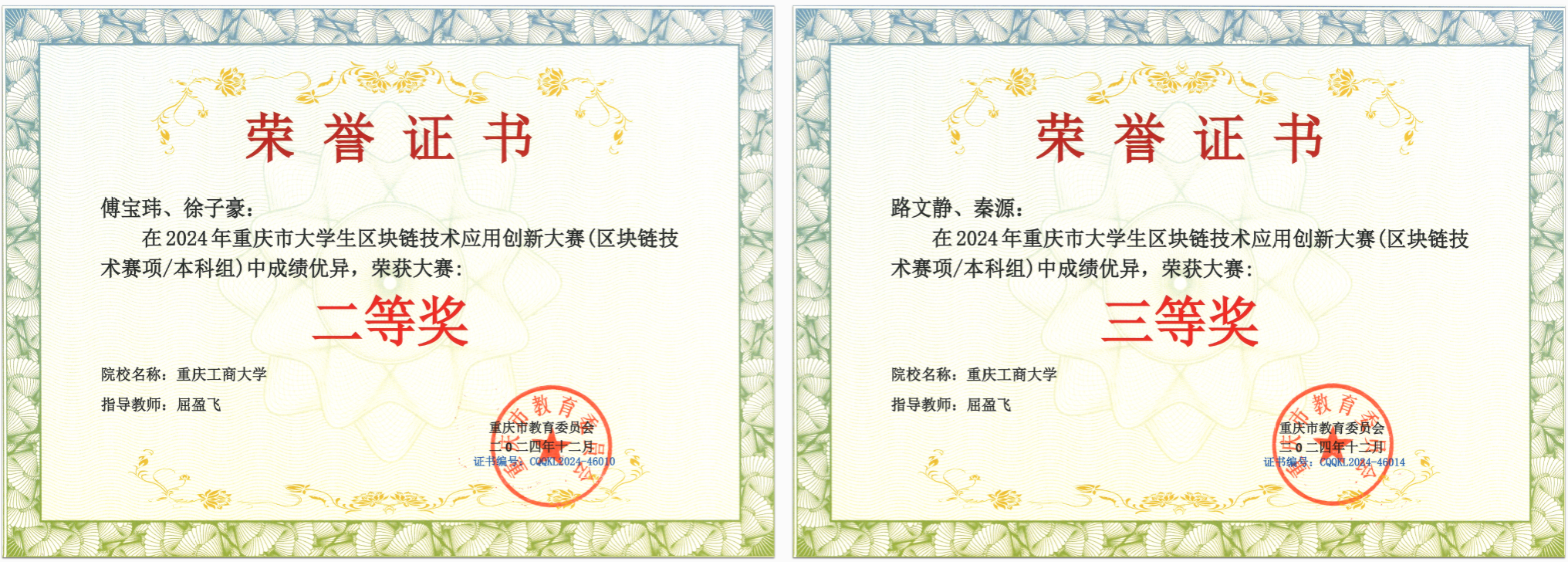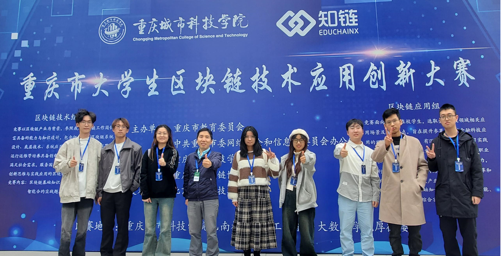 近日,2024年重庆市大学生区块链技术应用创新大赛圆满落幕。本次大赛由重庆市教育委员会主办、重庆城市科技学院承办,市内35所本科及高职院校的152支队伍、400余名师生参加比赛。pp电子人工智能学院组织的四支学生队伍在比赛中分别获得二等奖3个,三等奖1个。