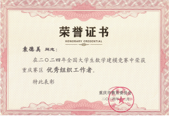 经过激烈的角逐,pp电子代表队获本科组全国一等奖1项(全市7个)、二等奖2项,获重庆市一等奖8项、二等奖19项。这是学校近五年在该赛事上首次获得全国一等奖。数学与统计学院院长陈义安获评重庆赛区优秀教练员,数学与统计学院袁德美教授获评重庆赛区优秀组织工作者。