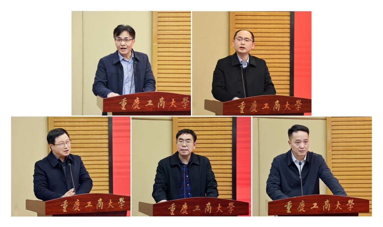 教师代表谈华伟在发言中结合自身经历,分享了他在教书育人过程中的实践与探索,并列举了学校优秀教育工作者矢志践行教育家精神的生动案例。他号召全体教师,以先进为镜,以使命为桨,坚定教育初心、更新教育理念、增强教学能力、提升科研水平,以实绩践行教育家精神,努力成为学生心中的“大先生”,为党和国家培养德才兼备的优秀人才,为推动教育事业发展贡献重工商大力量。