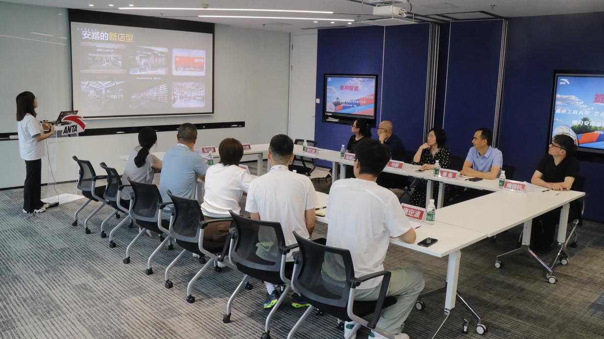 座谈会上,柏群介绍了学校的发展历程、学科特色及办学成果,她指出,学校始终坚持以社会需求为导向、以学生发展为中心的教育理念,希望通过此次走访,深入了解企业用人需求,推动校企在实习就业、产学研融合等领域的深度合作,共同培育符合行业需要的高素质人才,更好地服务国家和地方经济社会建设发展。唐玺、陈绪春分别作交流发言,重点介绍了艺术两院在人才培养、社会服务、产教融合等方面取得的成果和创新举措。汪燕对柏群校长及艺术两院的到访表示热烈欢迎,她详细介绍了安踏集团的企业概括及在川渝地区的发展战略、人才梯队建设及岗位需求,期待与艺术两院展开深入合作,实现校企资源互补、互利共赢。双方还就校企合作的具体形式和内容进行了探讨交流。