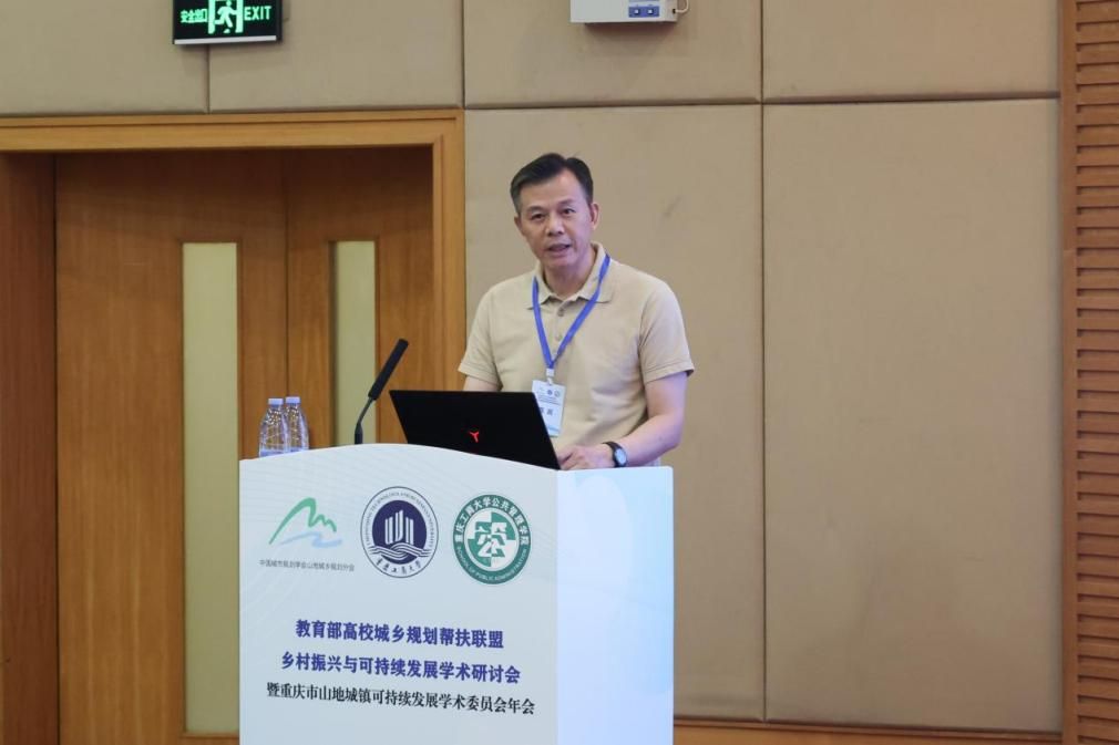 田双全代表学校致欢迎辞,向与会的专家学者表示热烈的欢迎。他介绍了学校近年来在服务国家重大战略和现代化新重庆建设中,不断深化完善学科专业整体布局,以“大商科+新工科”的商工融合创新发展为驱动,构建商工融合、多科协同的学科生态体系。作为重庆市属高校中唯一拥有城乡规划学一级学科硕士授权点的院校,学校已形成“地理学+管理学+城乡规划学”的多学科融合办学特色,近些年为地方输送专业人才超350余人。他表示,本次研讨会汇聚了众多专家学者与行业精英,是一次难得的学术交流盛宴。他期待以此次会议为契机,与各位同仁共同探索乡村振兴与山地可持续发展的前沿议题,学校也将继续以“山城特色”为锚点,以“服务地方”为己任,为城乡可持续发展贡献更多智慧。