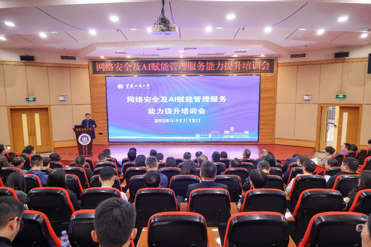 为全面提升学校网络安全防护能力,筑牢安全防线,深化AI赋能,助力学校数字化转型迈上新台阶,2025年11月12日下午,pp电子在博智楼7200学术报告厅成功举办“网络安全及AI赋能管理服务能力提升”专题培训会。本次培训由信息技术中心牵头,党委宣传部、党政办公室协同策划组织,校党委常委、副校长田双全出席会议,各学院、部门信息化工作分管领导、联络员、办公室主任及信息技术中心全体人员等近150人参加培训。信息技术中心主任田昌鹏主持培训会。