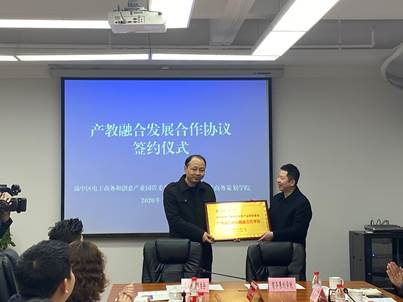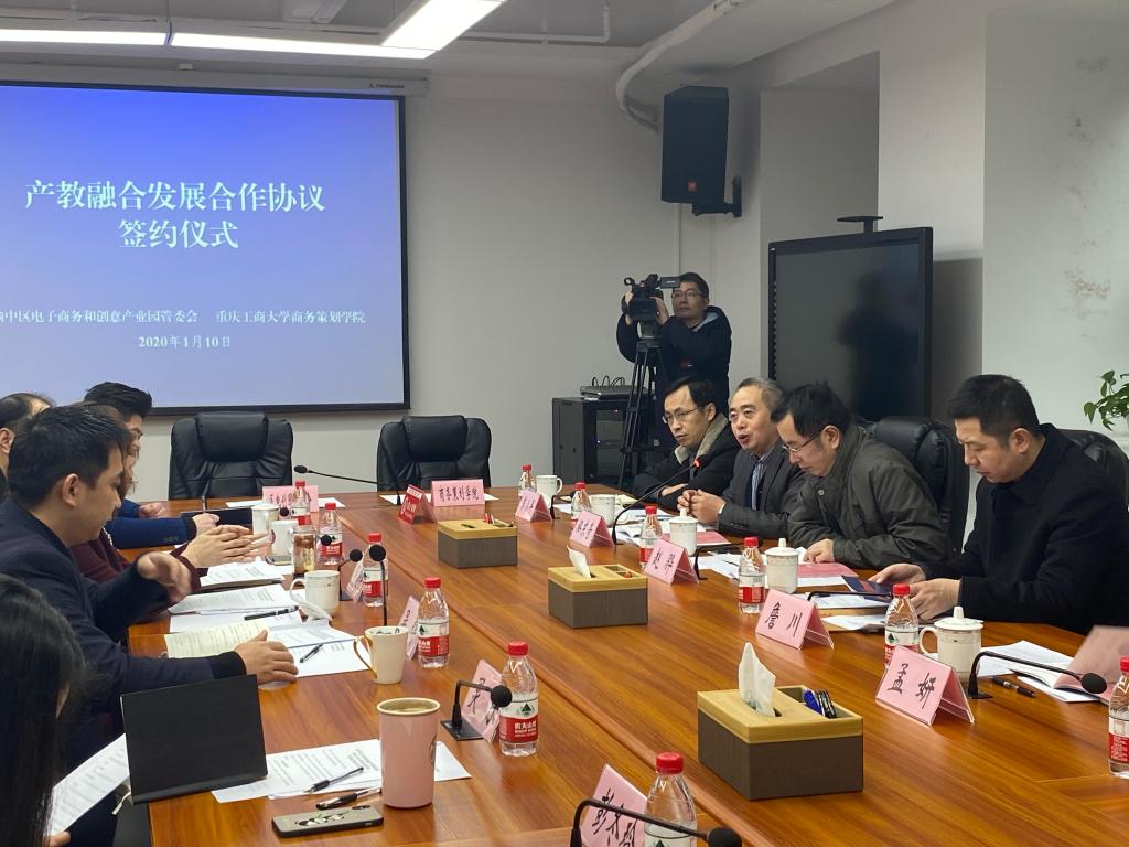 1月10日上午,商务策划学院与渝中区电子商务和创意产业园(简称:电创园)管委会签订产教融合发展合作协议。渝中区区政府副区长邹晓宇,pp电子副校长赵骅,商务策划学院院长骆东奇、副院长詹川出席签约仪式。