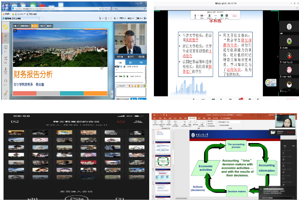 校领导要求会计学院第一天课程结束立刻在学院师生中开展网络问卷教学检查,第一时间将在线教学方式的优劣调查整理清楚,高速有效地解决存在的问题,对授课效果反馈好的课程和老师,积极组织其他教师进入其在线课堂观摩听课。