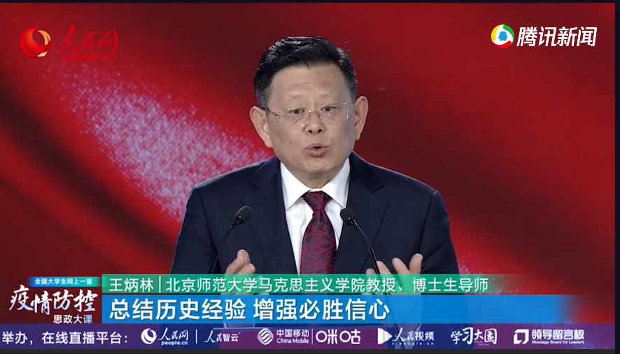 王炳林教授以《总结历史经验增强必胜信心》为题,从我国历史上的防疫斗争历程出发,讲述了中华民族从磨难中奋起、化危机为转机的历史经验和智慧,强调要正确地判断形势,辨证地看待问题;要增强忧患意识,强化底线思维;要尊重自然,尊重规律;要坚持党的领导,充分依靠群众。