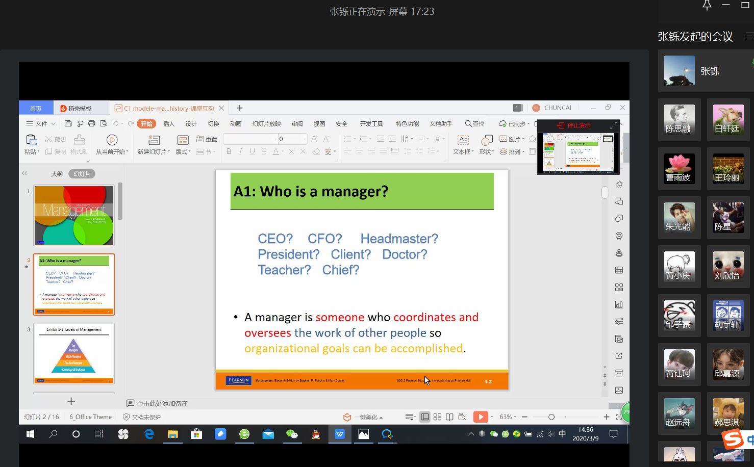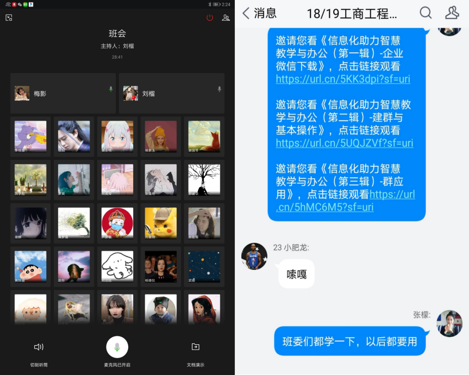 线上教学启动之前,管理学院学生工作队伍充分利用QQ群、微信群等网络平台及时通报学校、学院关于春季学期有关教学工作的规定和要求,提前了解学生现有的网络、电脑、手机等教学硬件情况,将学生参加线上教学存在的困难和问题向学院如实反映,为学院开展教学工作提供参考。为了帮助同学们迅速适应各种网络教学平台,辅导员们按照全院教师的在线教学方案,提前下载、使用、熟悉企业微信、腾讯课堂、雨课堂等教学平台,就各种教学平台的功能进行交流学习,通过开展线上主题班会、进行个别辅导等方式,组织学生集中学习和自主学习,针对线上平台使用技术开展学习培训和指导交流,经过转发培训视频、学习操作手册、试用教学平台等环节,帮助学生熟悉平台功能,掌握平台操作流程,为顺利开展线上学习打下良好基础。