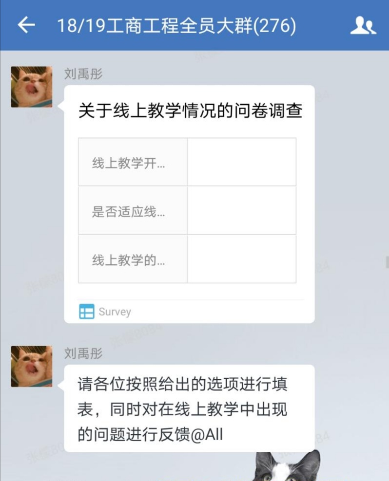 线上教学三天结束后,管理学院学生工作队伍利用休息时间面向全体学生开展了线上教学情况调研,全面了解学院线上教学开展情况,发现其中存在的问题和不足,认真倾听同学们的意见和建议。针对同学们反映的问题,辅导员们认真记录和梳理,并仔细耐心进行解释说明,让同学们认识线上教学客观存在的困难,引导学生理解改善教学效果的长期性和渐进性,呼吁大家共同面对挑战,共同出谋划策,共同战胜困难。针对同学们提出的建议,辅导员们及时向分管学生工作的副书记反映,并由副书记在学院教职工大会上向全体教职工进行通报,希望老师们针对学生提出的合理建议,结合个人教学实际情况予以调整和改进。截至目前,在全院师生的共同努力下,管理学院线上教学开展顺利,绝大多数学生已经基本适应线上教学方式,线上教学效果总体良好。同学们纷纷表示,要向奋斗在抗疫一线的工作者学习,充分发挥主观能动性,积极克服没有纸质教材、网络信号不好、线上教学易于分散注意力等困难,主动配合各科老师认真参加线上教学,绝不让疫情给学习生活带来更大的负面影响。