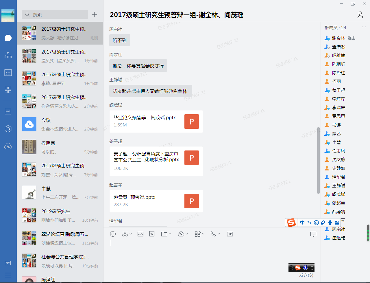 预答辩是学位论文质量控的重要一环,社会与公共管理学院于3月20日下午举行了2017级社会学研究生学位论文预答辩。学院制定了硕士学位论文预答辩审核标准,确定了预答辩工作方案,在企业微信里建立了5个预答辩小组群。预答辩同学提前将学位论文、答辩PPT发送给答辩老师,预答辩同学及答辩委员进行视频会议平台测试。2017级社会学学科点的21位研究生参与预答辩,低年级研究生旁听了本次答辩会。