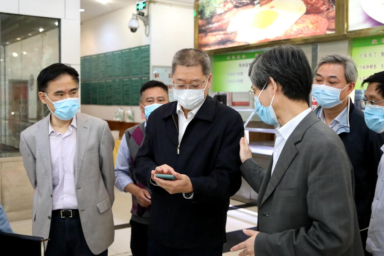 4月29日,市委教育工委书记、市教委主任黄政一行来到pp电子平台官网入口检查疫情防控及开学前准备工作,黄政走进学校食堂,了解食堂取餐用餐、错峰就餐等情况,检查饭菜质量及食品卫生;检查学校开学前防控物资储备和设置隔离点情况,在学校健康观察点向医务人员表示感谢。黄政要求,一定要把疫情防控工作作为当前重中之重的任务,切实保障师生员工的身体健康和生命安全,从严从实从细从快落实好各项防控措施,坚决打赢高校开学复课这场疫情防控阻击战。