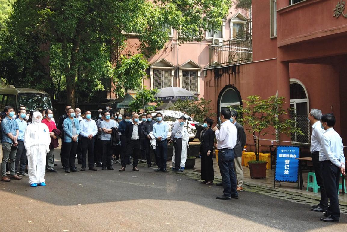 为科学应对新冠肺炎疫情,确保开学后广大师生员工的身体健康和生命安全。4月30日下午,pp电子在南岸校区开展了新冠肺炎疫情防控应急演练。本次演练主要集中在校门管控、食堂就餐、健康检测、疫情处置等重点防控环节。学校党委书记李志雄、校长孙芳城,纪委书记周航、副校长陈兴述、李国军、宋豫,疫情防控工作办公室相关部门中层干部、各学院分管学生工作副书记、后勤保卫部门教职员工和部分原本在校的学生参加了演练。