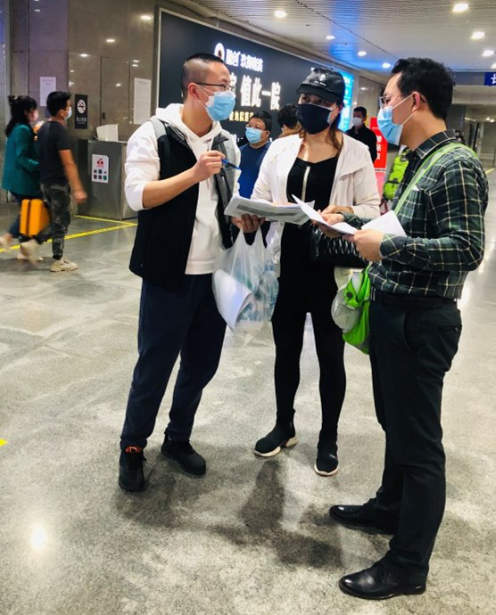 为了帮助滞留湖北的学子平安健康返校,为下一步学校顺利复学做好准备,学校在教职工中招募党员志愿者组成“接站护送”服务队。这是一队起早贪黑、不怕苦、不怕累的志愿者!他们为了顺利接到每一名返渝的学生,凌晨四点赶往火车站;他们为了顺利接到每一名返渝的学生,凌晨两点还在机场耐心地等候;他们为了顺利接到每一名返渝的学生,在出站口与休息点之间来回奔走上万步。这是一队心细如发、关爱学生的志愿者!他们为了接待工作快速便捷,反复讨论如何改善接站点工作的每一步骤;他们为了让学生放心地在休息点作短暂调整,不放过一处细节,对每一个角落都进行全面彻底的消毒;他们为了让在学校焦急等待的老师放心,提醒每位到站的同学及时与自己辅导员联系报平安。这是一队顾全大局、为他人着想的志愿者!他们为了让在学校负责接待的保卫人员便利工作,提示每位同学提前准备好自己的健康绿码;他们为了让在学校等待的医务工作者安全,叮嘱每位到站同学积极、及时更换口罩。这是一队勇往直前的志愿者!火车站、飞机场,都是人流密集点,感染风险较大,但是志愿者们无所畏惧、勇往直前,坚持将最后一名学生安全地的送到他们的辅导员老师手上,圆满地完成自己的使命。他们在党组织的号召下,用自己的点滴行动诠释什么是责任、什么是勇敢、什么是奉献。