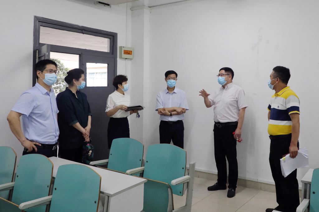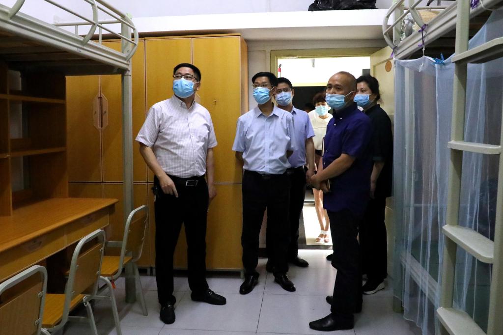 5月8日,市委教育工委委员、市教委专职督学莫龙飞一行到pp电子调研疫情防控和学生返校前准备工作。学校副校长陈兴述、李国军和相关职能部门负责人陪同调研。