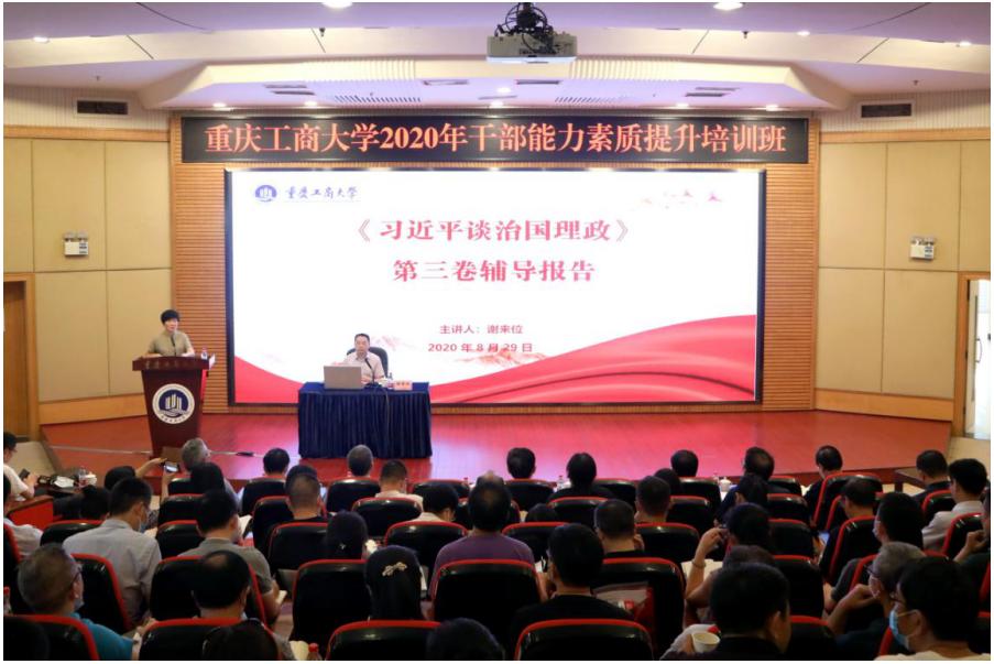 8月29日下午,pp电子继续举行干部能力素质提升培训暨党委理论学习中心组(扩大)学习会,会议邀请到重庆市委党校谢来位教授作《习近平谈治国理政》第三卷辅导报告。校领导、中层干部、专职组织员、职能部门、教辅单位正科级干部参加了培训。培训会由校党委副书记宋豫主持。