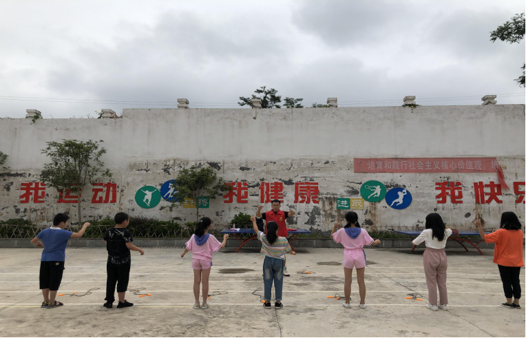 实践团谭宇杭为乡村少年儿童开展跳绳运动教学