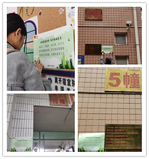 为更好地扩大宣传面,校义协印制了“共践爱国卫生·携手抗击疫情”为主题的宣传海报400余张。10月20日起,志愿者们将海报张贴宣传到各学生宿舍,指引同学们学习爱国卫生知识,弘扬爱国卫生精神,携手抗击疫情。来自南岸校区北区五幢的肖同学说:“每天进出楼栋都可以看到,这种简单便捷的宣传和提醒,我觉得很有必要。它可以时刻提醒我们,良好健康的习惯非常重要,疫情仍未结束,防控依然要坚持”。