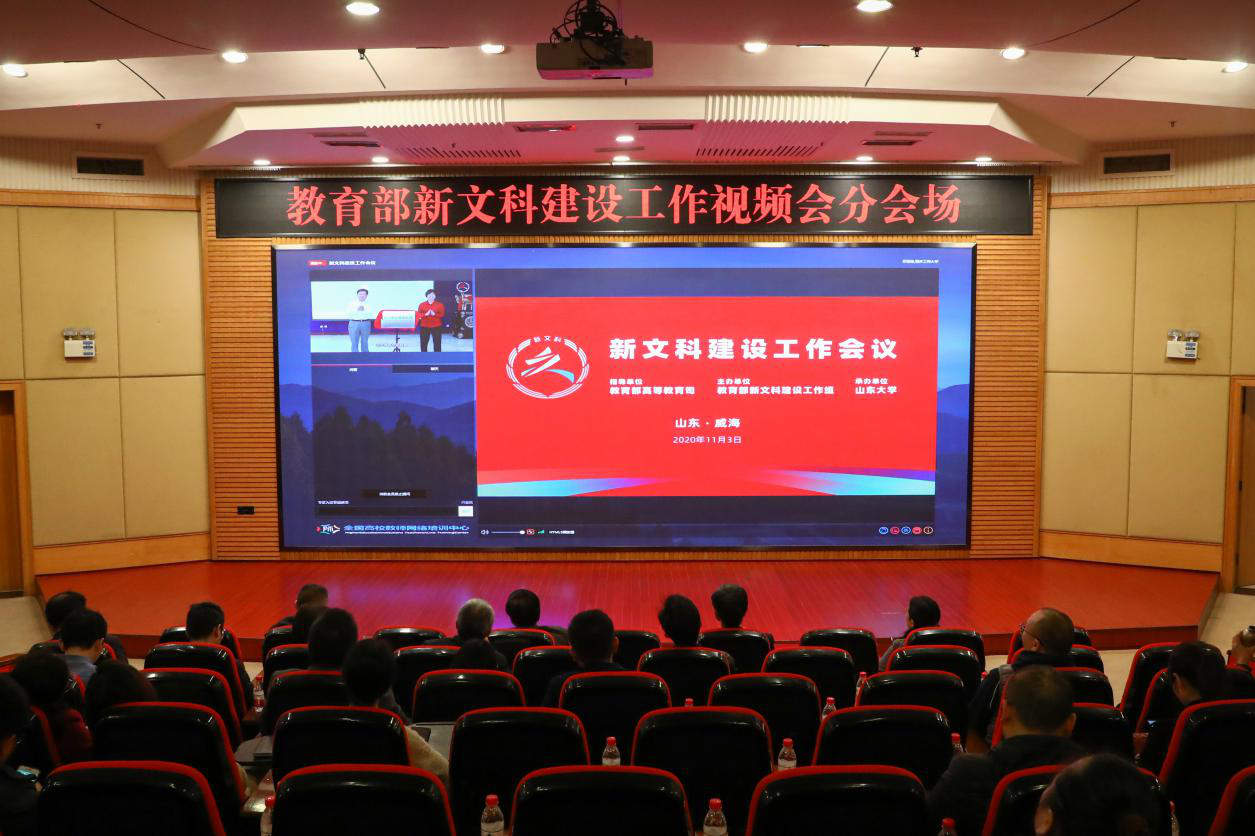 11月3日,由教育部新文科建设工作组主办的新文科建设工作会议在山东大学(威海)召开,发布《新文科建设宣言》,对新文科建设作出全面部署。会上,教育部高教司司长吴岩作题为《积势蓄势谋势识变应变求变全面推进新文科建设》主题报告。pp电子在博智楼7200报告厅设立视频会分会场。校长孙芳城,副校长何勇平、柏群、李敬,国家教学指导委员会委员、各学院院长、教学副院长、系主任及骨干教师,教务处(创新创业学院)、国际合作与交流处等部门中干和相关科室负责人参加了视频会议。