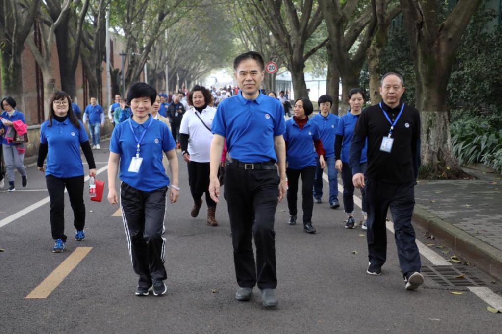 待裁判员一声令下,选手们精神饱满地从校前广场出发。天气晴好,老师们热情高涨,享受着欢乐健步走带来的快乐。活动结束后,选手们一起合影留念。