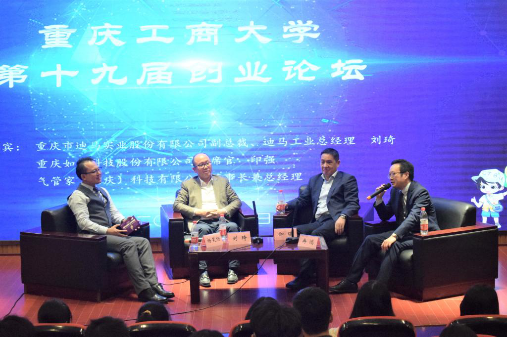 创业论坛上,主持人杨笑杨博士和三位嘉宾一起共话创业创新精神,给在场的师生们带来了一场精彩的现场对话。刘琦通过迪马工业的发展和转型历程的分享,讲述了“创业、创新无处不在”,并告诉同学们一定要经常走出校园,去寻求校园之外的经历,寻找到生活中的创新点;印强则通过自身的创业经历,告诉同学们创业不能一蹴而就,需要在自已的优势点上不断深耕,方能走向成功的彼岸;冉鸿结合自己联合pp电子MBA校友创办“南山会”的心路历程,跟同学们分享了创业过程中资源整合、优势互补的重要作用。三位嘉宾妙语连珠,引得现场不时爆发出掌声和欢笑声,同学们也在欢快的气氛中感受到了创业创新精神对于大学生自我发展的意义所在。