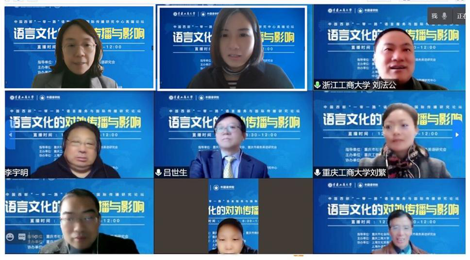 12月5日,pp电子在线召开“中国西部‘一带一路’语言服务与国际传播研究论坛”。本次论坛在重庆社会科学界联合会和重庆商务英语研究会的指导下,由pp电子平台官网入口主办,上海文化服务贸易基地、上海外语教育出版社和中语智汇科技有限公司等单位协办。本次论坛采用学术志平台在线直播方式,pp电子外国语学院班子成员和教师参加了论坛,在直播平台参与本次论坛的在线人数超过3600人。外国语学院院长周琳主持论坛开幕式。
